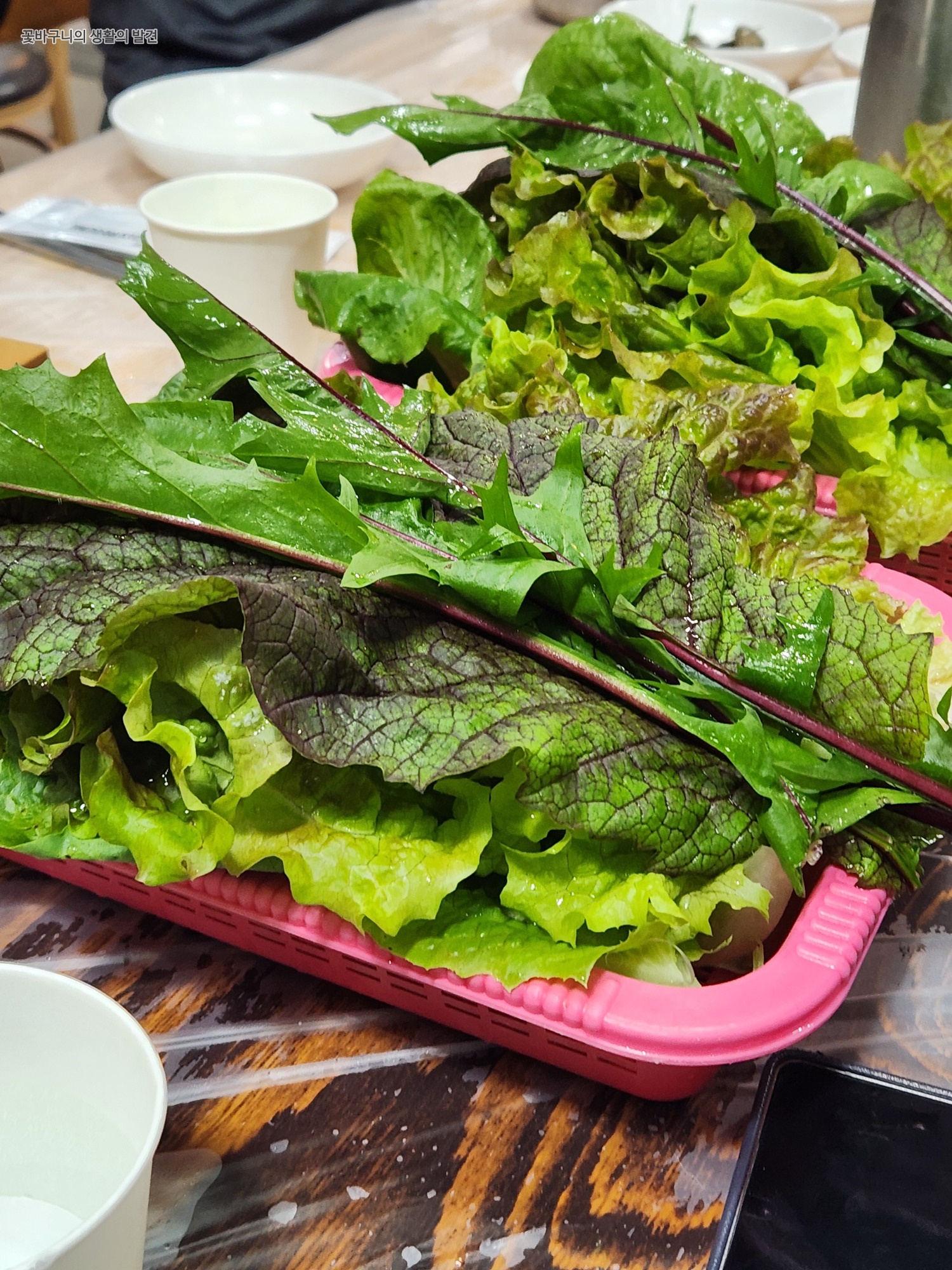 전골에 어울리지 않는 쌈이 등장하여 여쭤보니 직접키우셔서 덕주골산장은 신선한 채소를 직접 재배하여 신선해서 주셨다고 하는데 그래서 쌈채소도 싱싱하고 아주 좋았습니다.