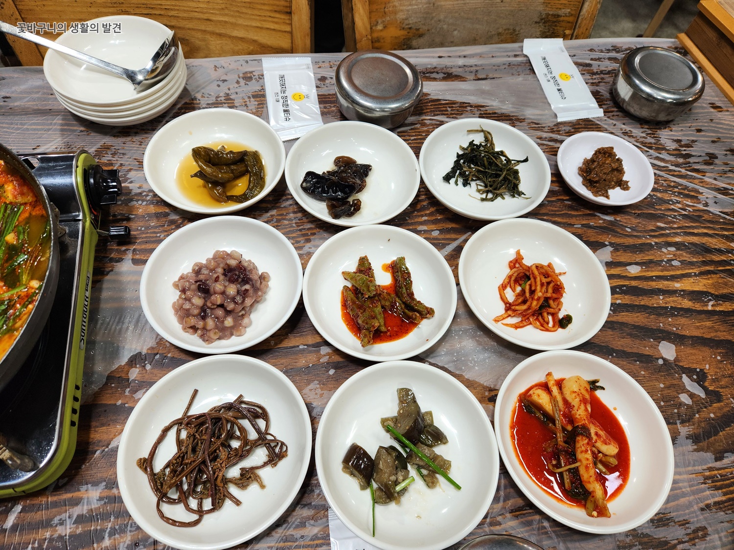넓고 쾌적한 매장과 여유로운 이블간격은 식사에 집중하기에 안성맞춤이었고 미리 세팅되어 있던 밑반찬과 두분전골은 쌀쌀한 날씨에 비 맞으며 등산까지 마친 후에 뜨근한 국물은 그야말로 제격이었습니다. 마치 한정식 전문점에 온 듯 여러 가지 반찬들이 정성스럽게 차려있었는데 하나하나 맛없는 것이 없습니다. 고춧가루를 매콤한 것을 사용하시는 듯 적당히 매콤 칼칼한 김치과 고추무침, 무생채도 맛나고 나물들도 본연의 건강하고 깊은 맛이었습니다. 반찬도 리필이 가능해서 더욱 좋았습니다.