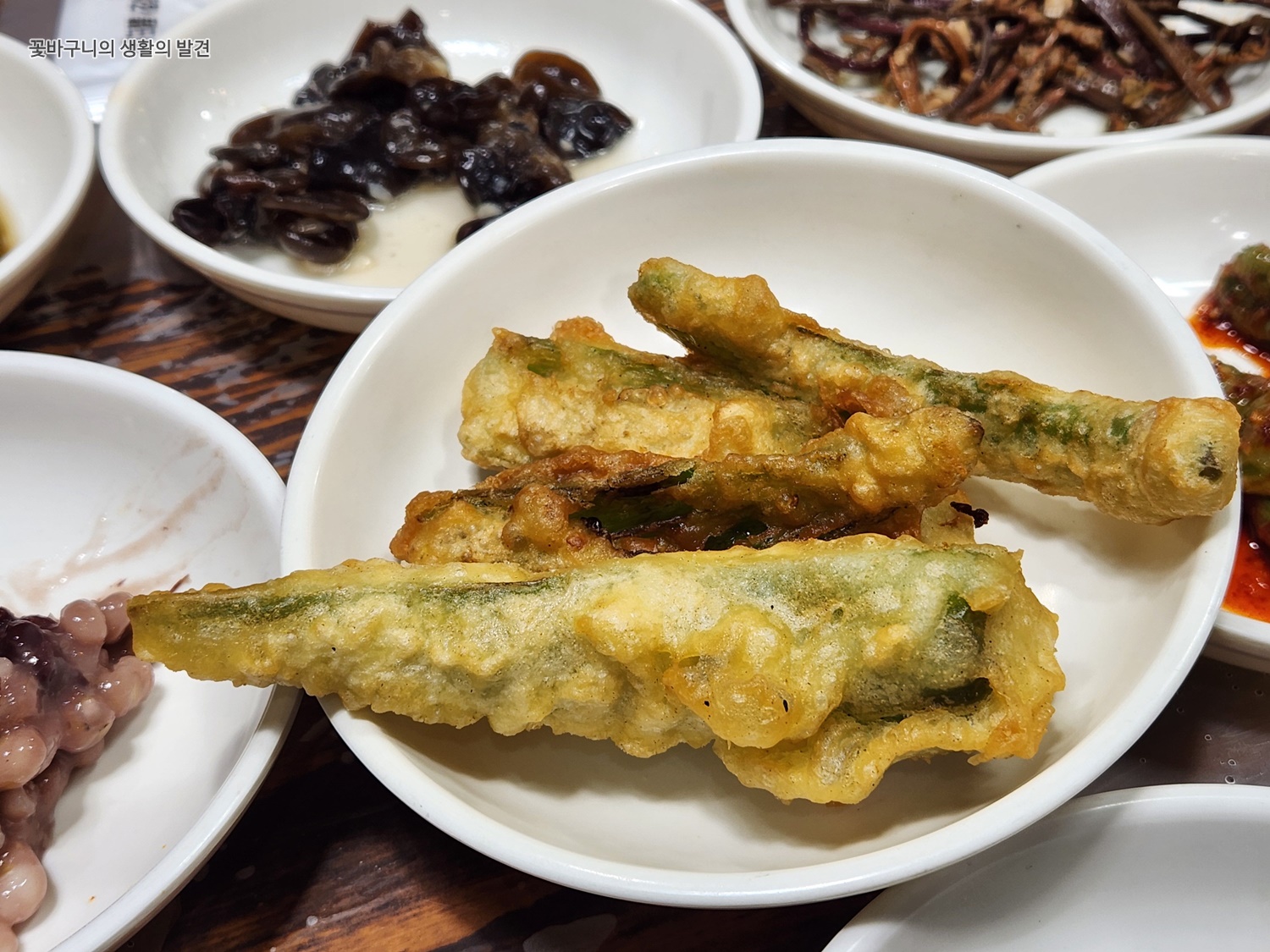 갓 튀겨 나온 고추 튀김도 따뜻하고 살짝 매콤해서 아주 좋았습니다.