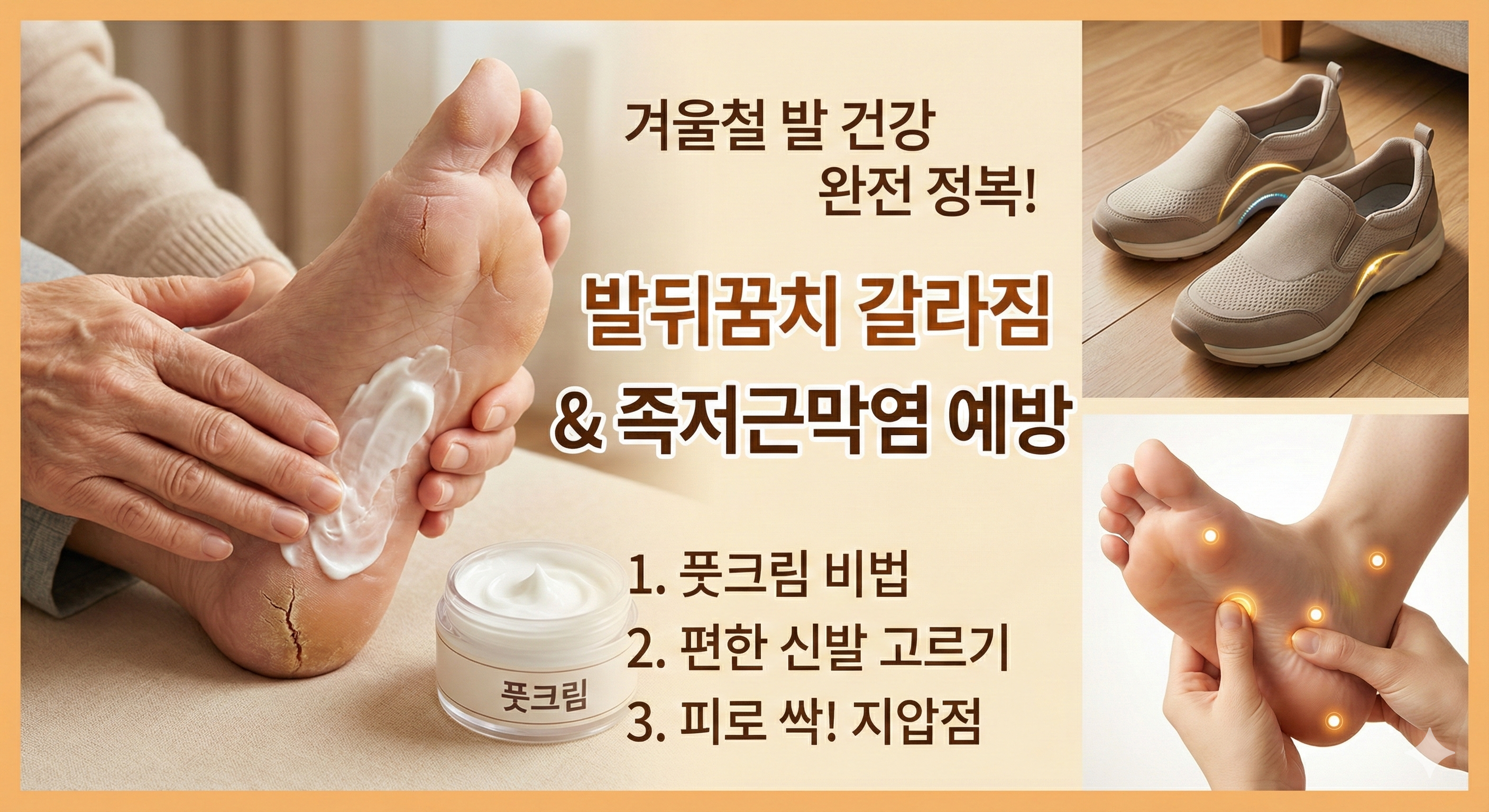 오늘은 겨울철 발뒤꿈치 갈라짐 관리법부터 족저근막염 예방을 위한 신발 고르는 법, 그리고 피로를 싹 풀어주는 지압법까지 완벽하게 정리해 드립니다.