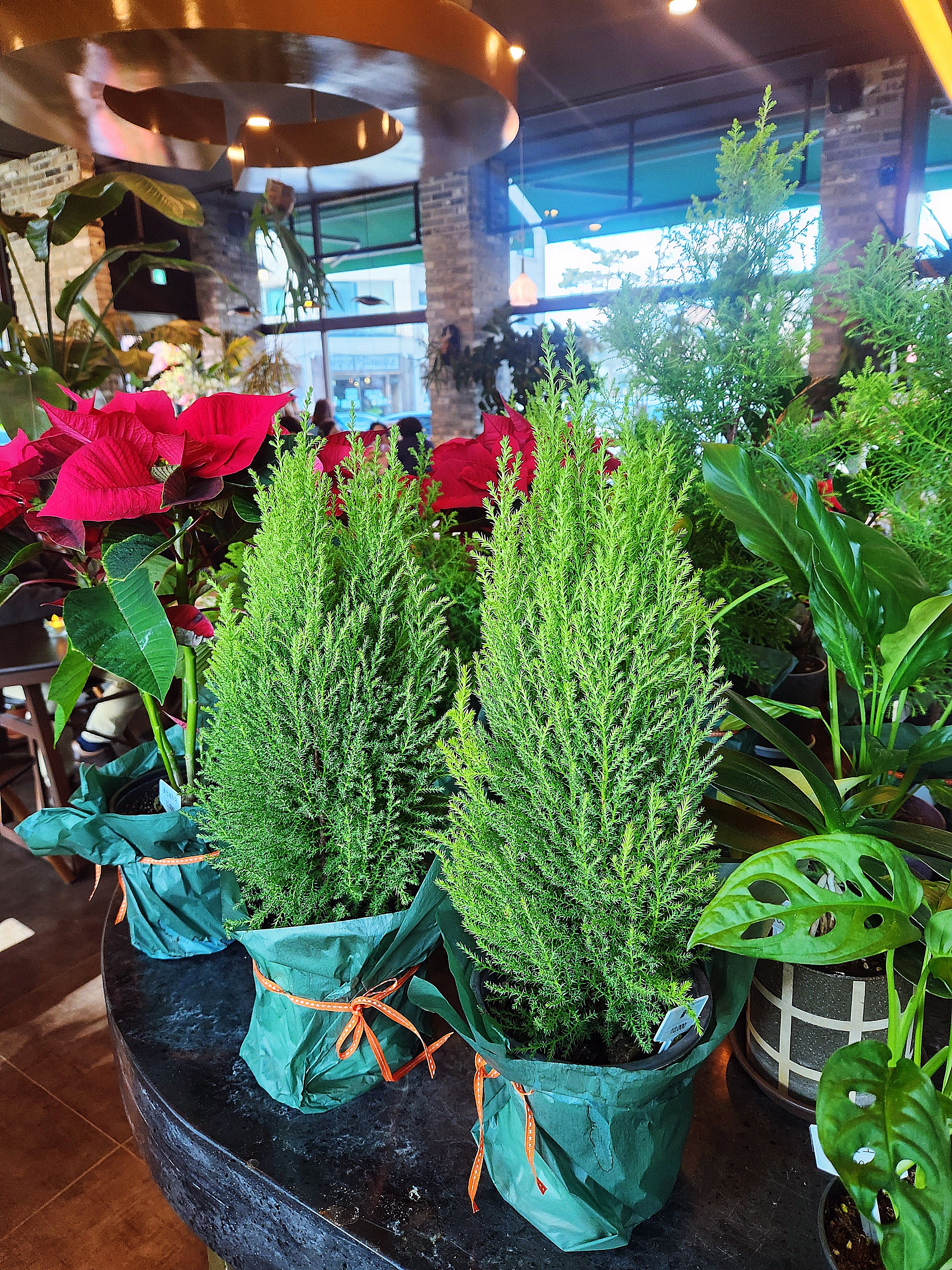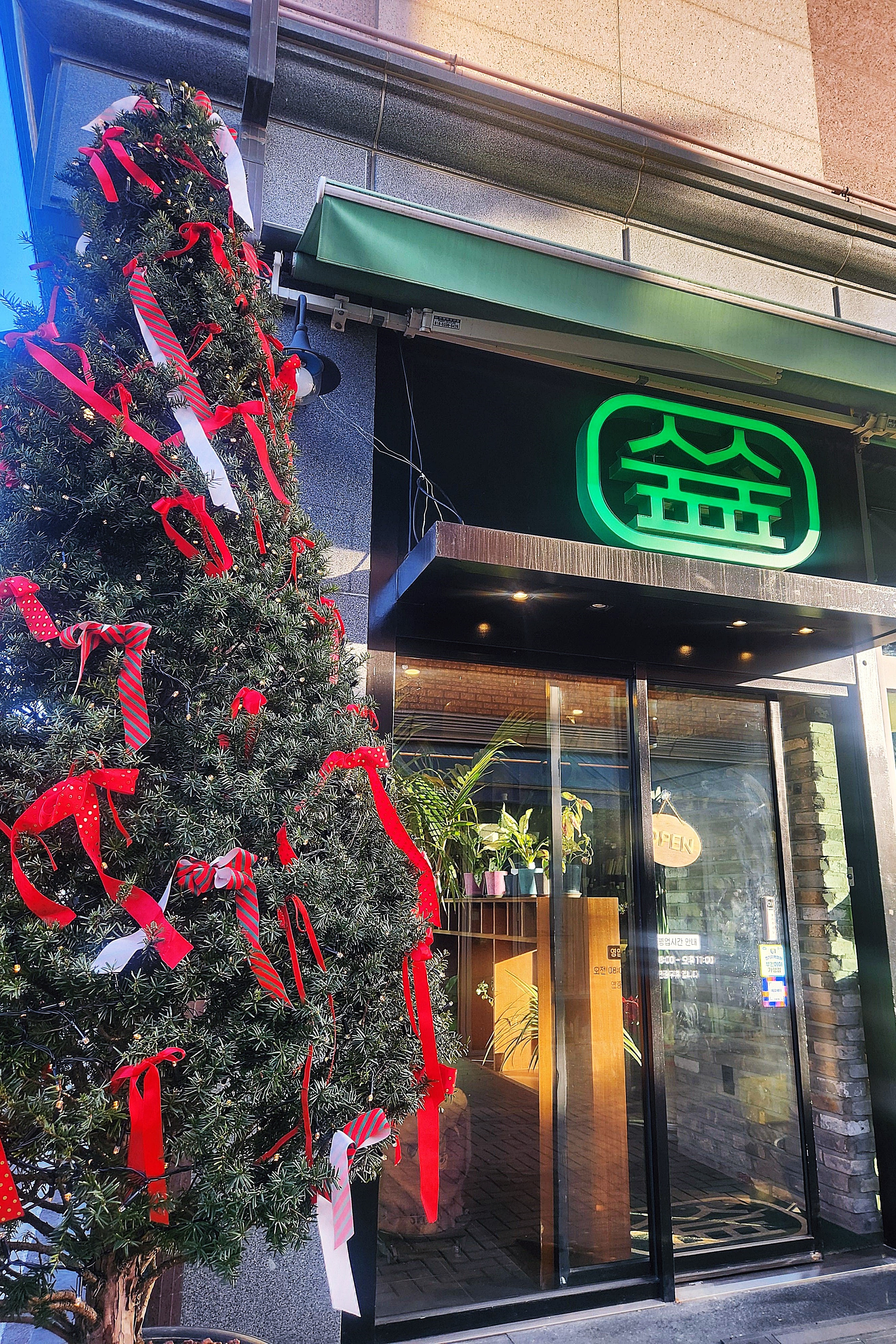 내부에 들어서자 마자 초록초록한 식물들이 자리하고 있어 카페 이름처럼 숲에 온 느낌입니다. 천장에 닿을 듯한 크리스마스트리도 반짝반짝 예쁘네요~