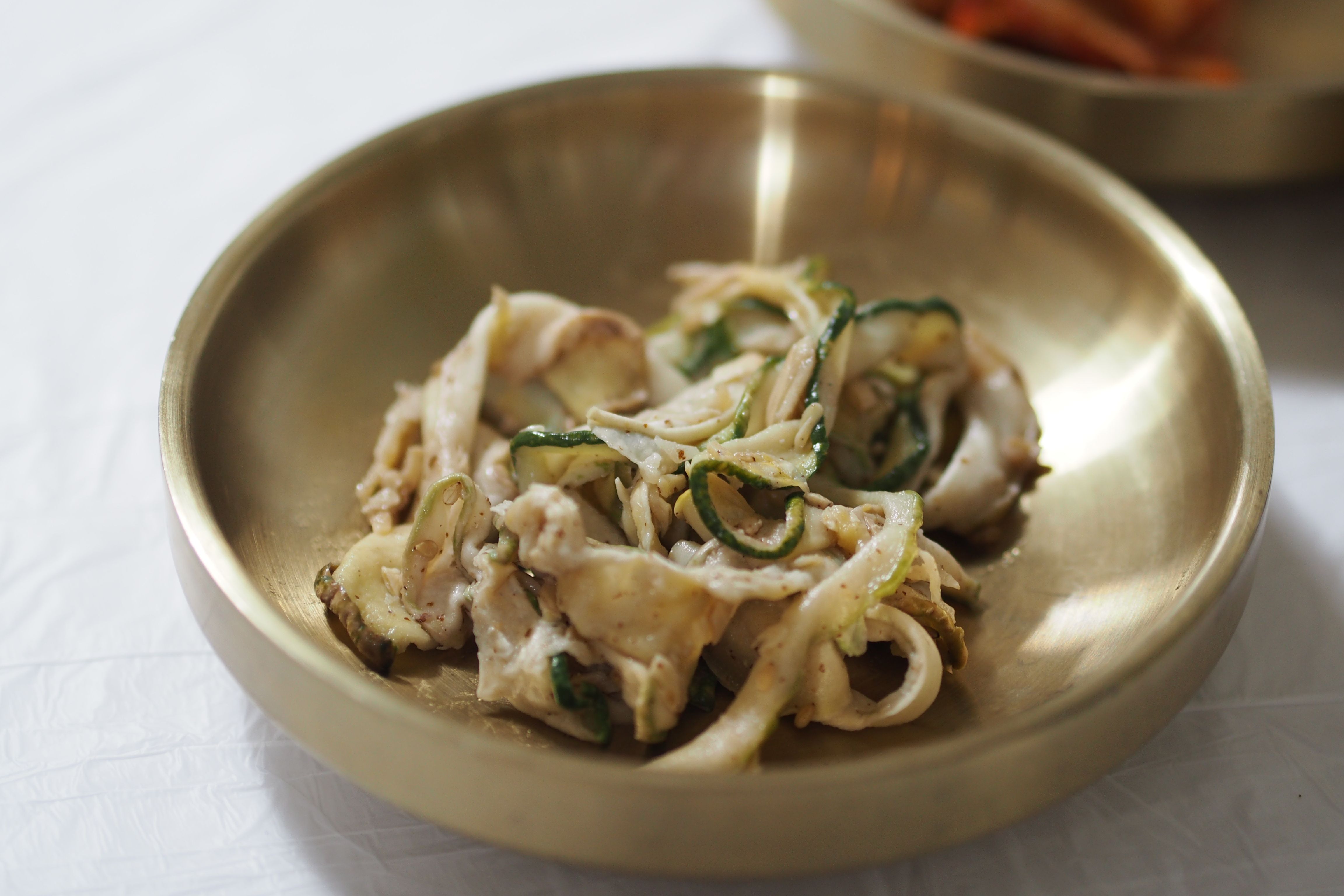 밑반찬은 계속 리필 가능하고 깔끔하고 간이 세지 않은 말린 호박무침이었는데 호박자체의 은은한 단맛과 고소함이 어우러져 깔끔하고 건조된 호박 특유의 꼬득함이 아주 맛이 좋았고 꼬들꼬뜰하면서 쫄깃하게 씹히는 식감이 일품이었습니다. 자꾸 손이 가서 저 혼자 한 접시를 다 비웠습니다.