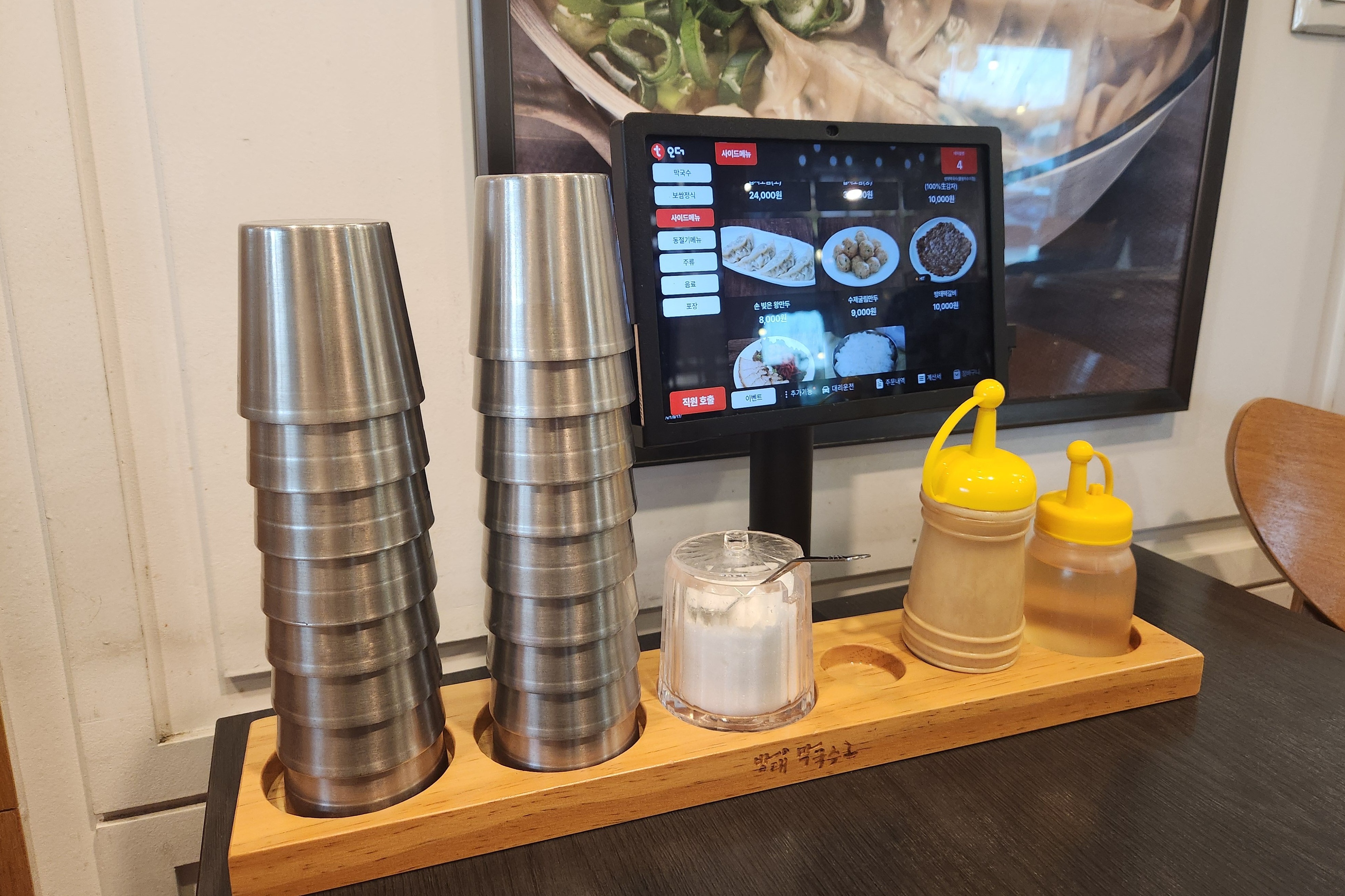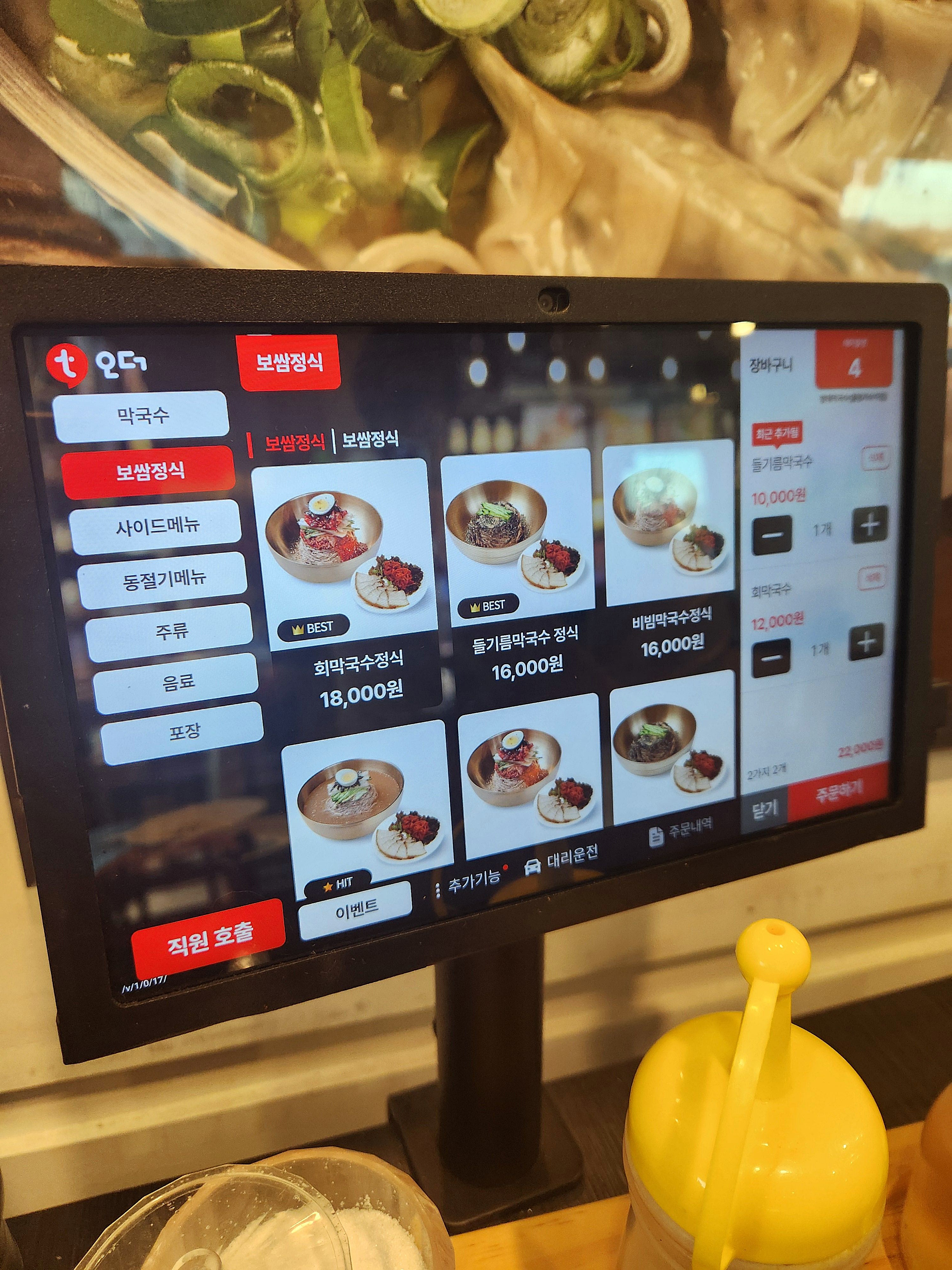 테이블마다 키오스크가 있어 주문하기도 편한데 막국수 외에도 만두나 보쌈정식도 있습니다. 저희는 들기름 막구수와 회막국수. 그리고 왕만두를 주문했습니다.