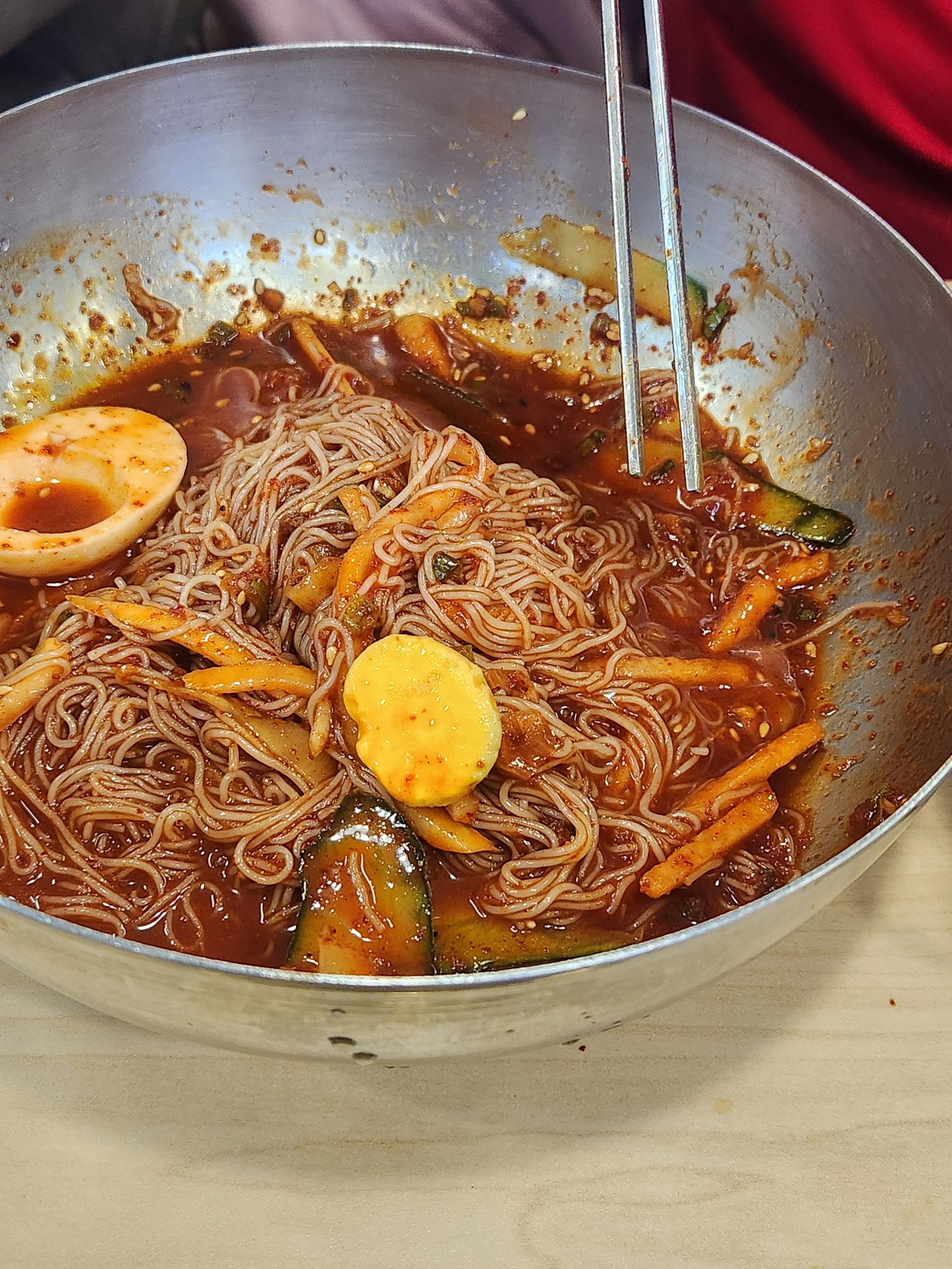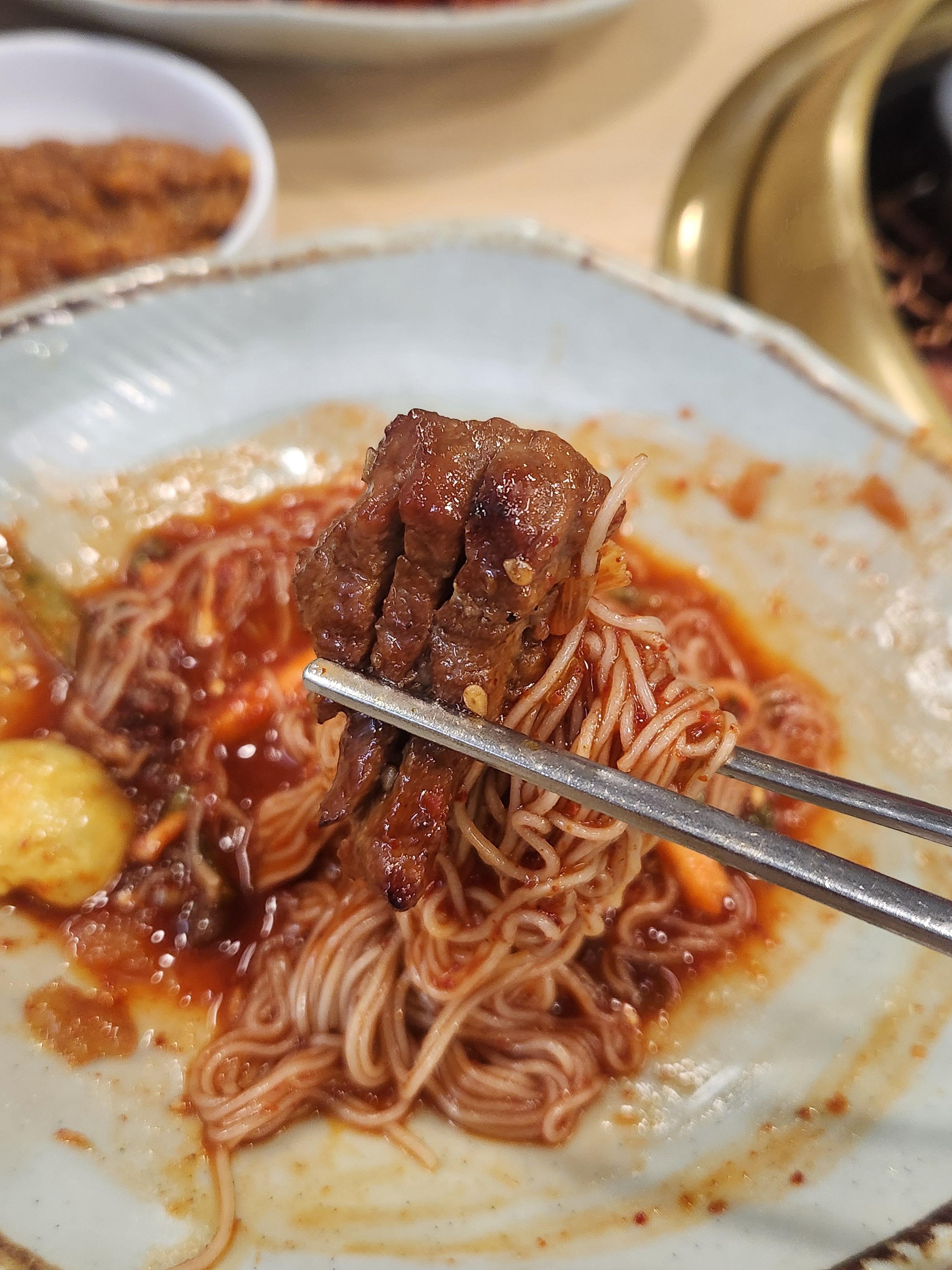 비빔냉면에 싸 먹는 맛는 그야말로 꿀맛이네요~