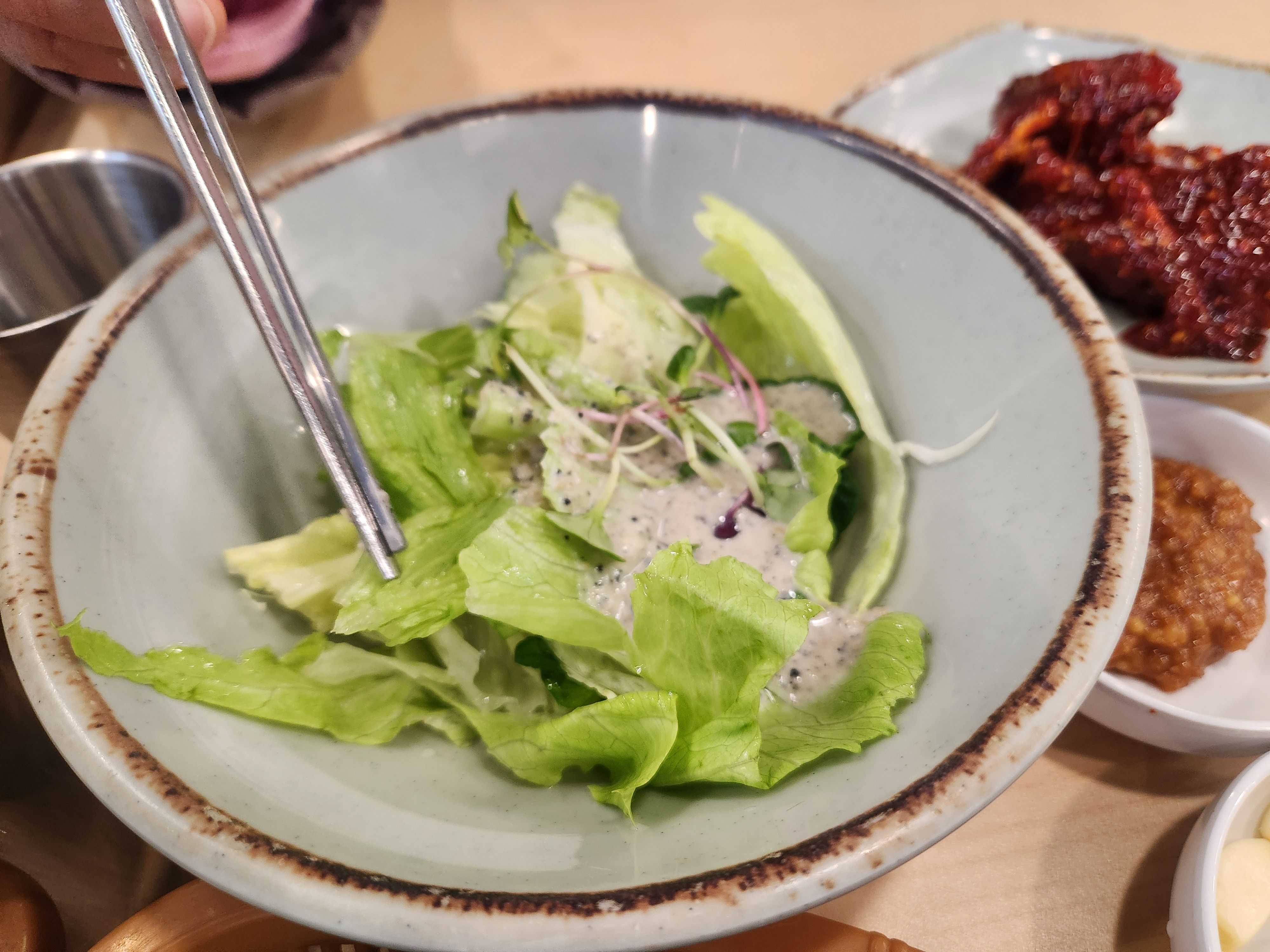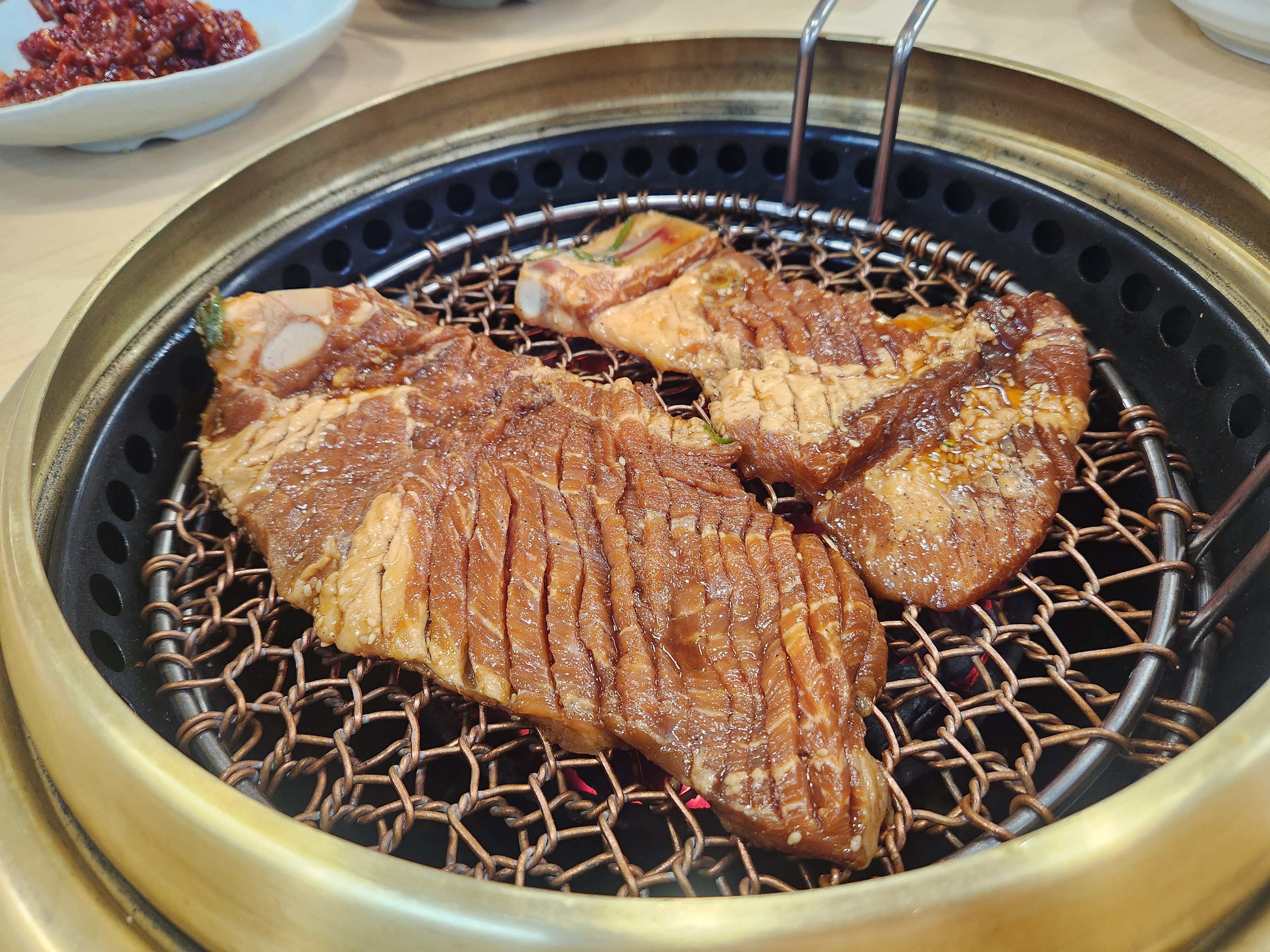 제 입맛에 적당히 새콤한 해파리 냉채는 한번더 주문해서 먹었습니다.갈비 먹기전에 아주 좋네요~ 그리고 양념게장은 게살이 아주 실하고 양념이 맛있습니다.반찬으로 나오는 게장들은 간혹 속이 빈집들이 있는데 이곳은 살이 아주 꽉~ 들어차 있습니다.