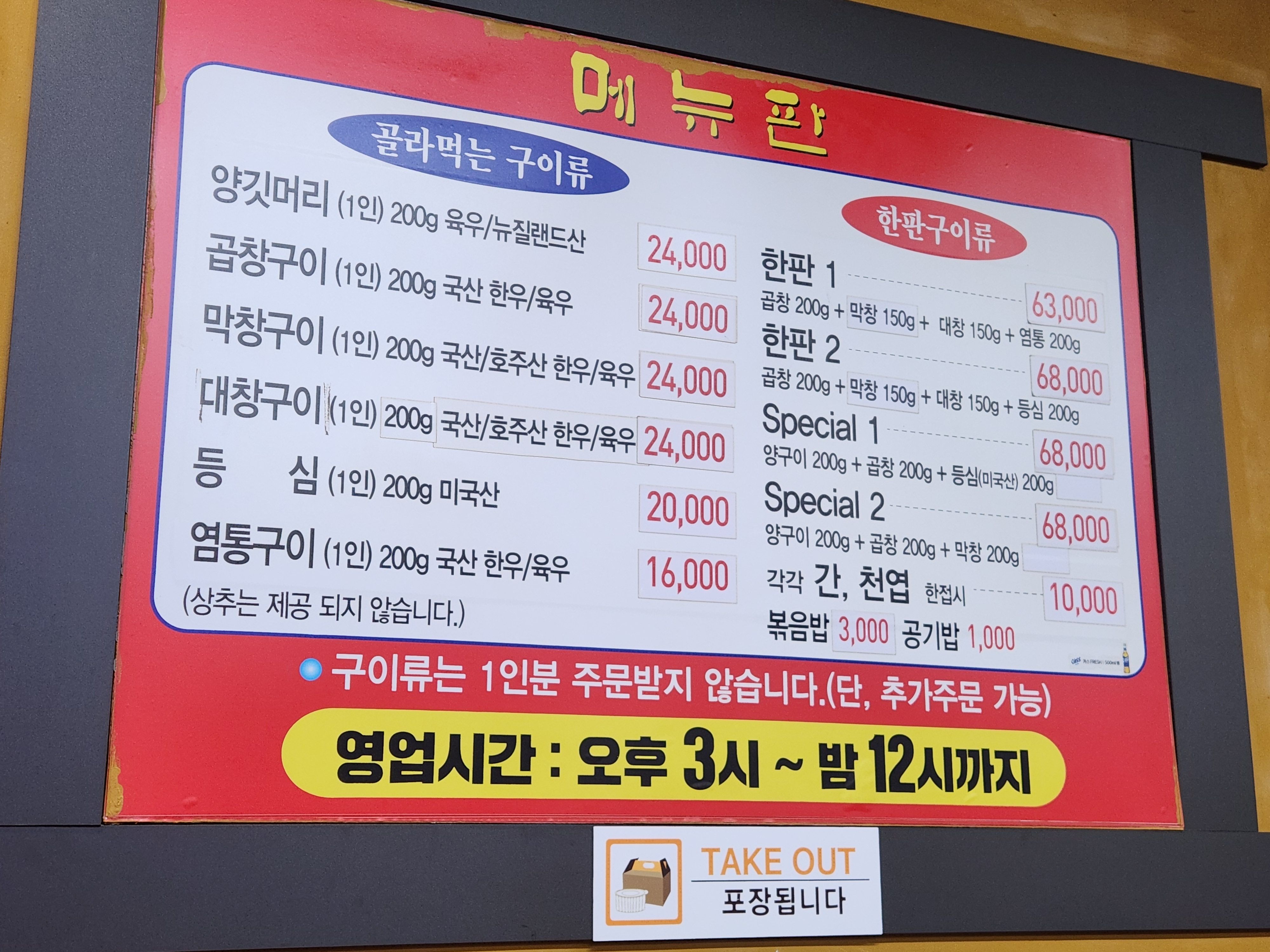 - 💰 주문 메뉴: 한판1 (모듬), 곱창구이 추가, 볶음밥 등