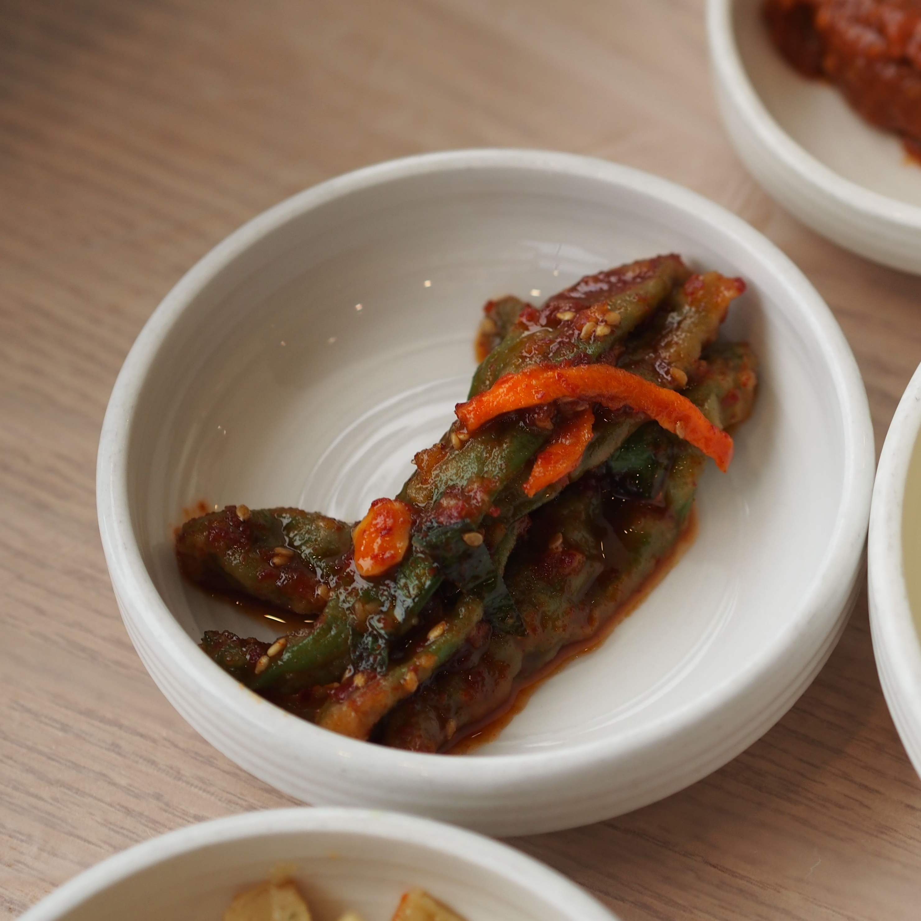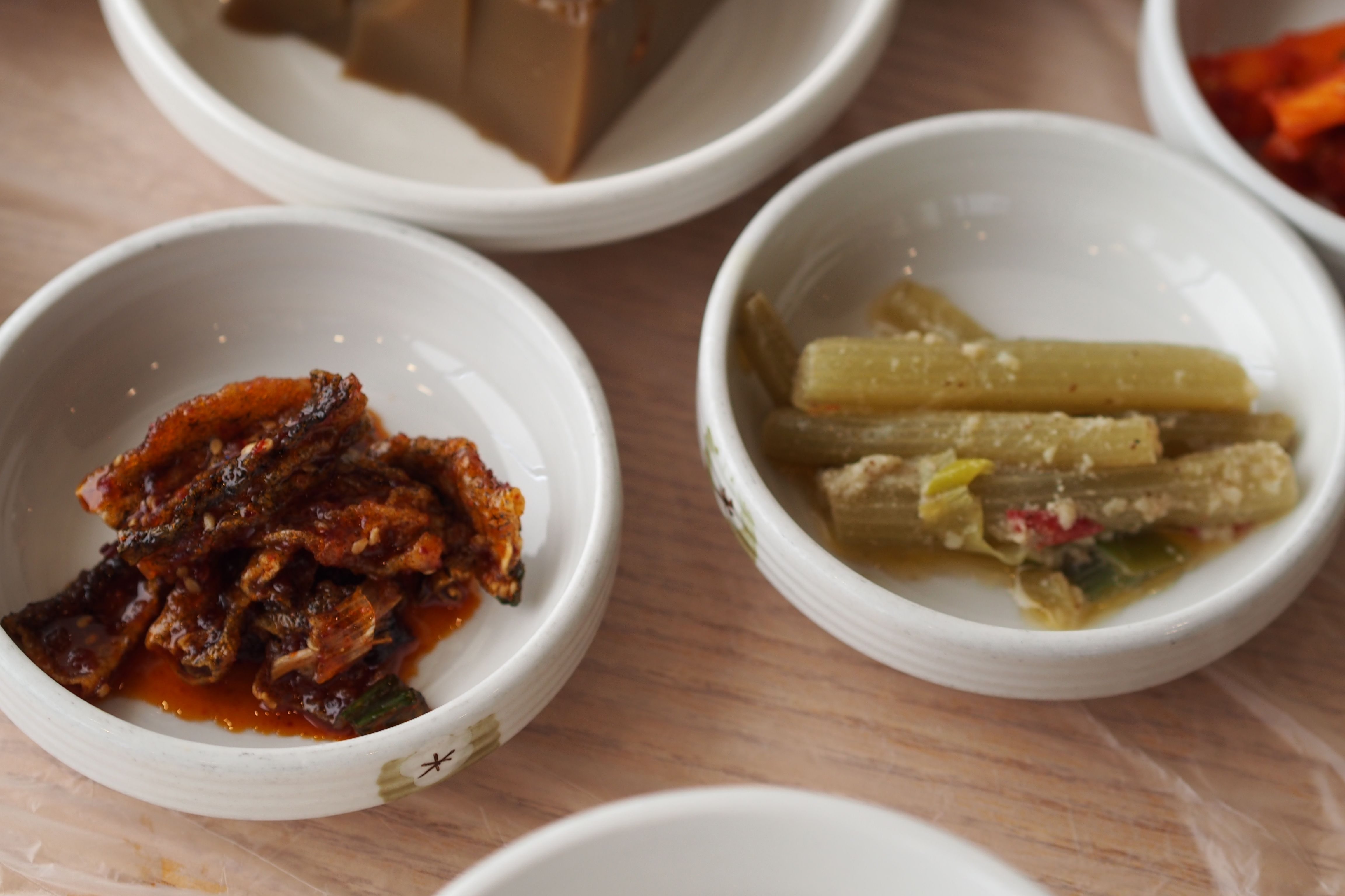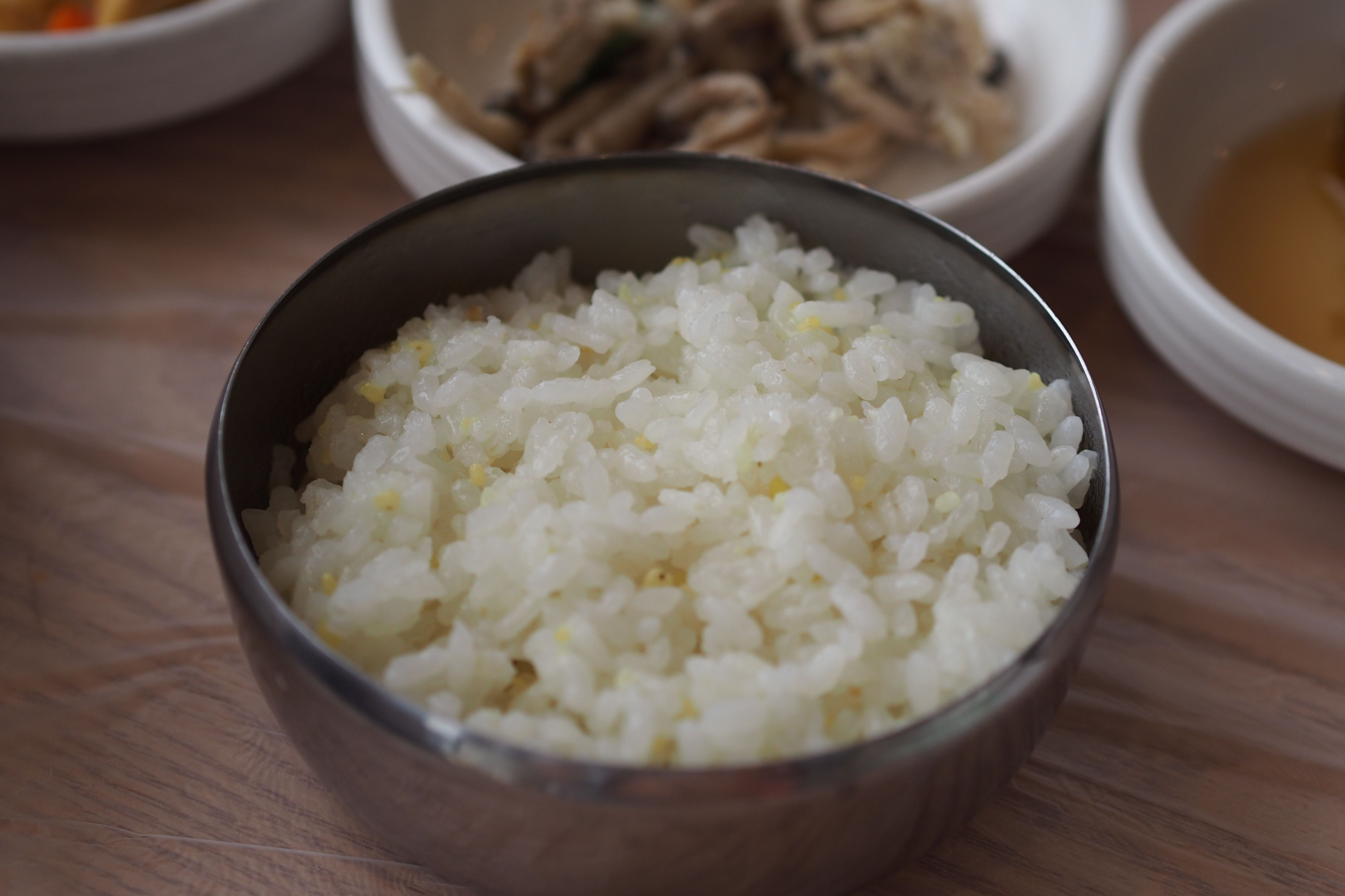 정갈한 기본 반찬들과 신선한 채소가 한상 가득입니다. 하나같이 정성이 느껴지는 맛깔스런 손맛이 느껴지는 반찬들이었습니다. 반찬 가짓수가 많아 제육이 익기 전에 밥 한 공기 다 비울듯합니다.