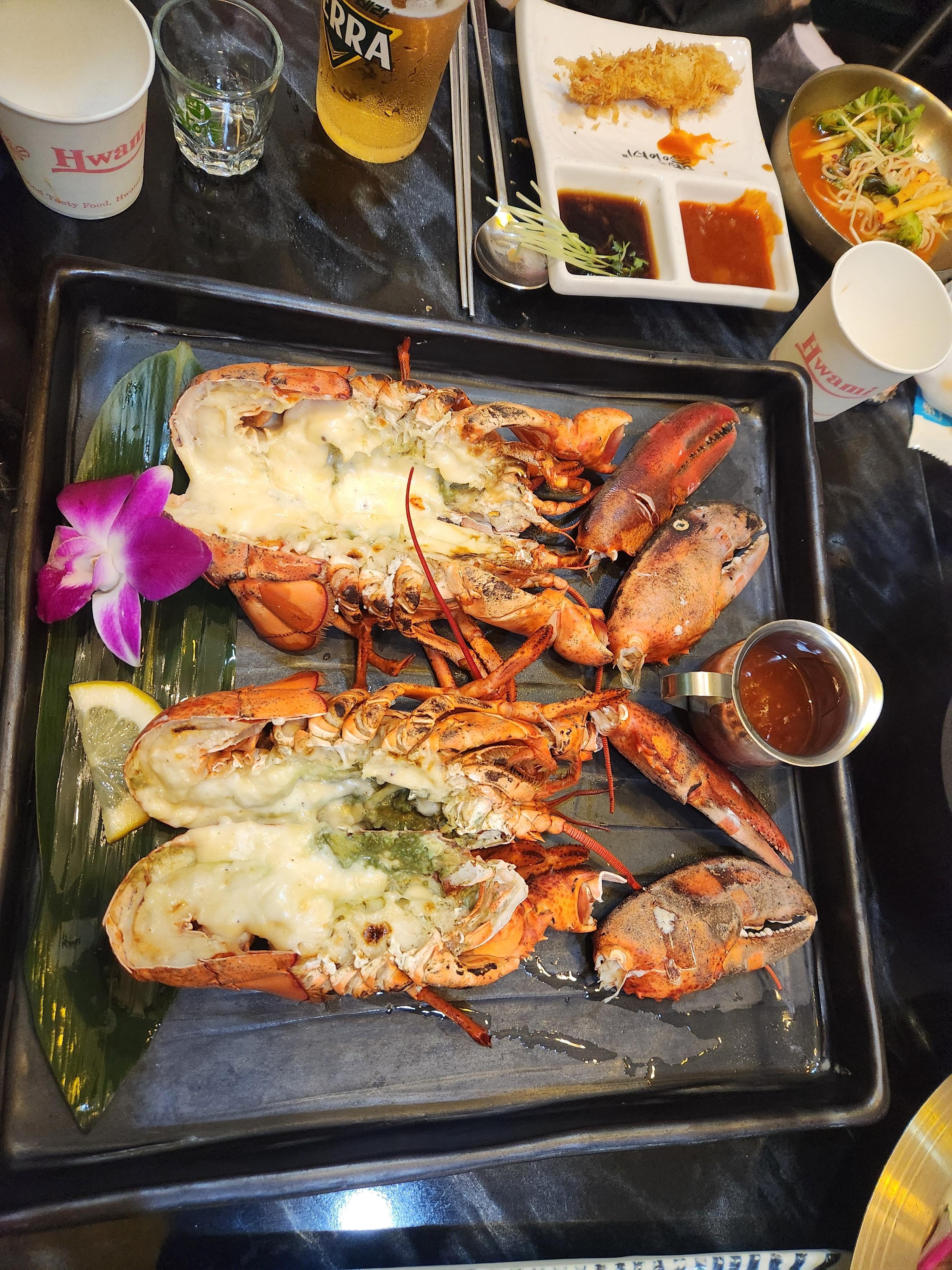 치즈랍스터구이. 모차렐라 치즈와 무염버터로 쫄깃하면서 고소함이 너무 맛있네요~사이즈도 작지 않고 살도 통통했습니다.