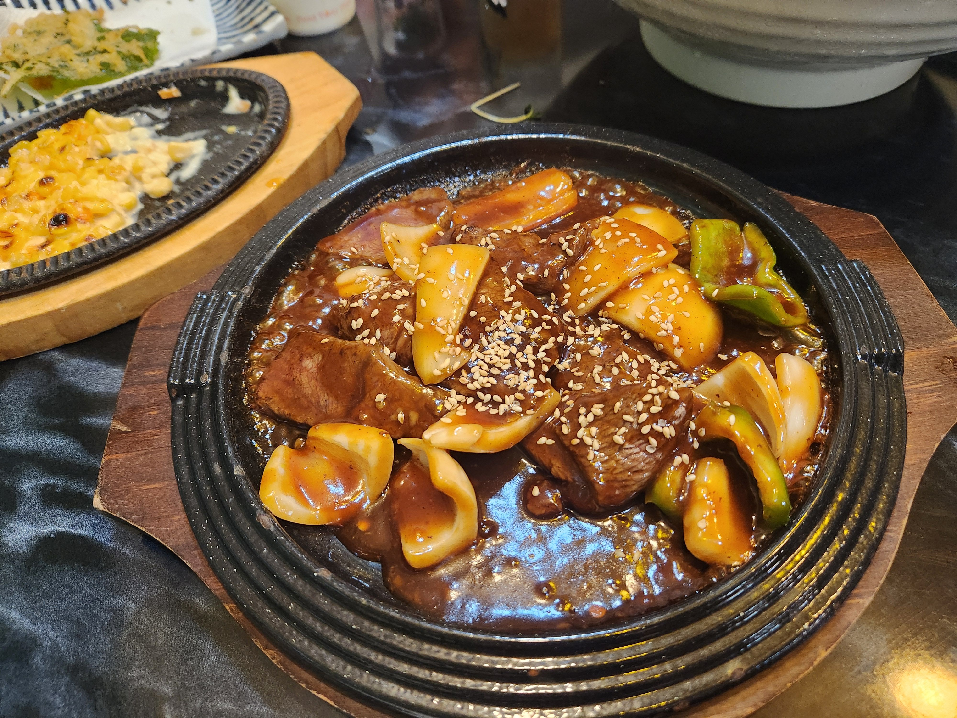 이건 서비스라고 주신 새콤달콤한 찹스테이크도 회를 먹는 중간중간 술안주로 아주 잘 먹었습니다.