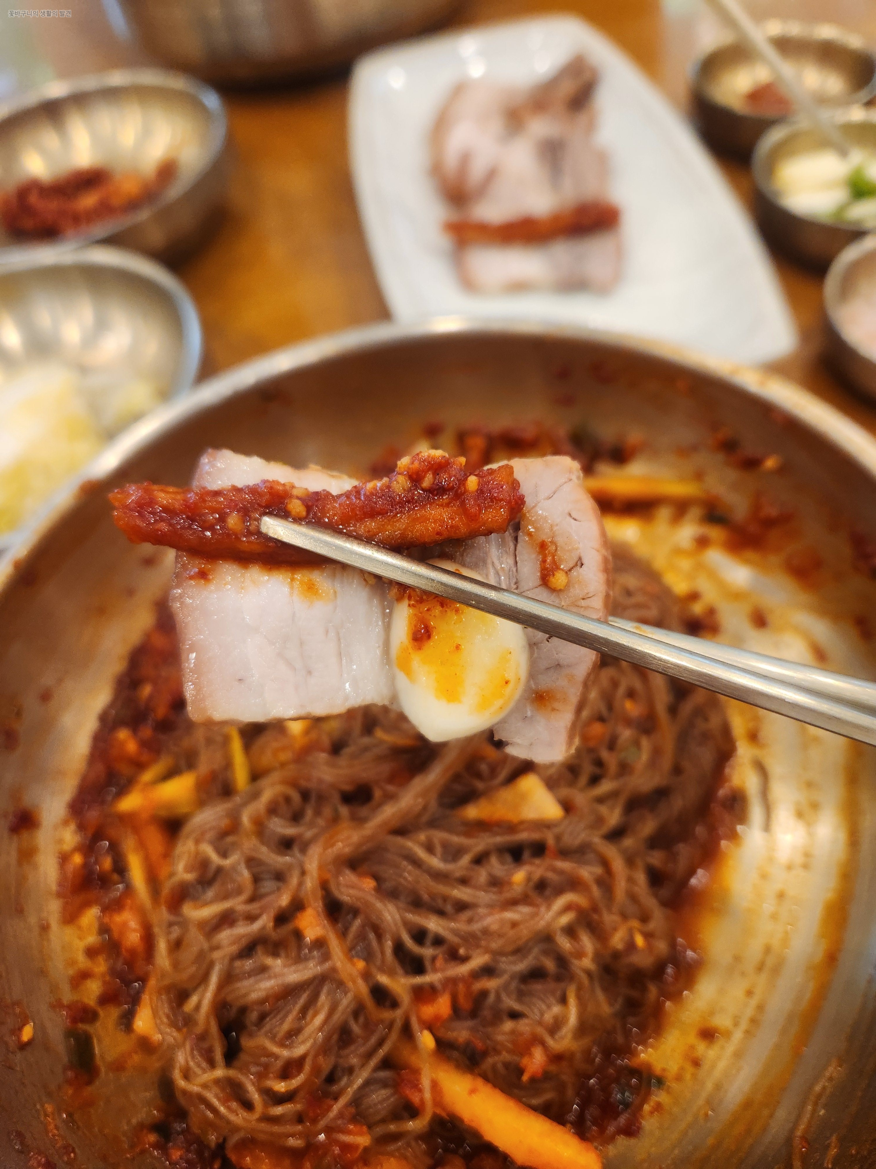 제일면옥은 냉면뿐만 아니라 탕종류나 맛깔스러운 수육도 함께 판매하고 있었는데요. 저는 회냉면을 그리고 짝꿍은 시원한 물냉면과 수육 미니 사이즈를 주문했습니다.