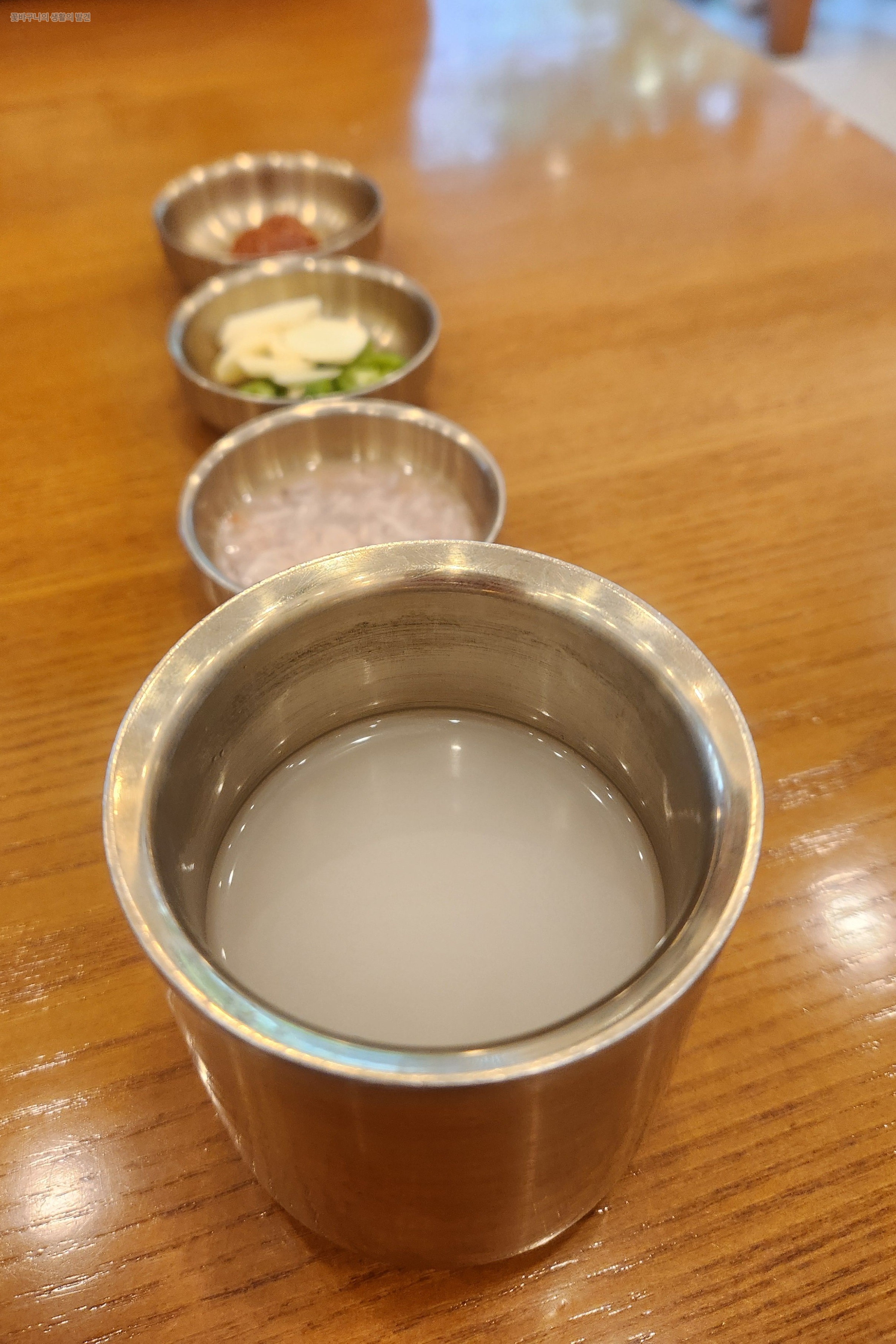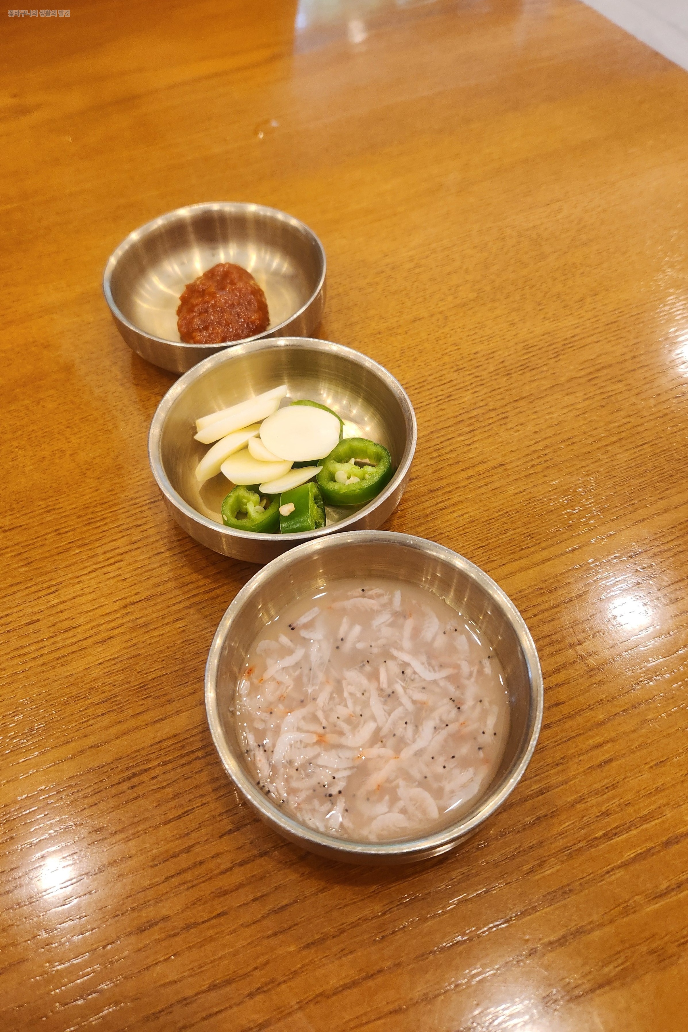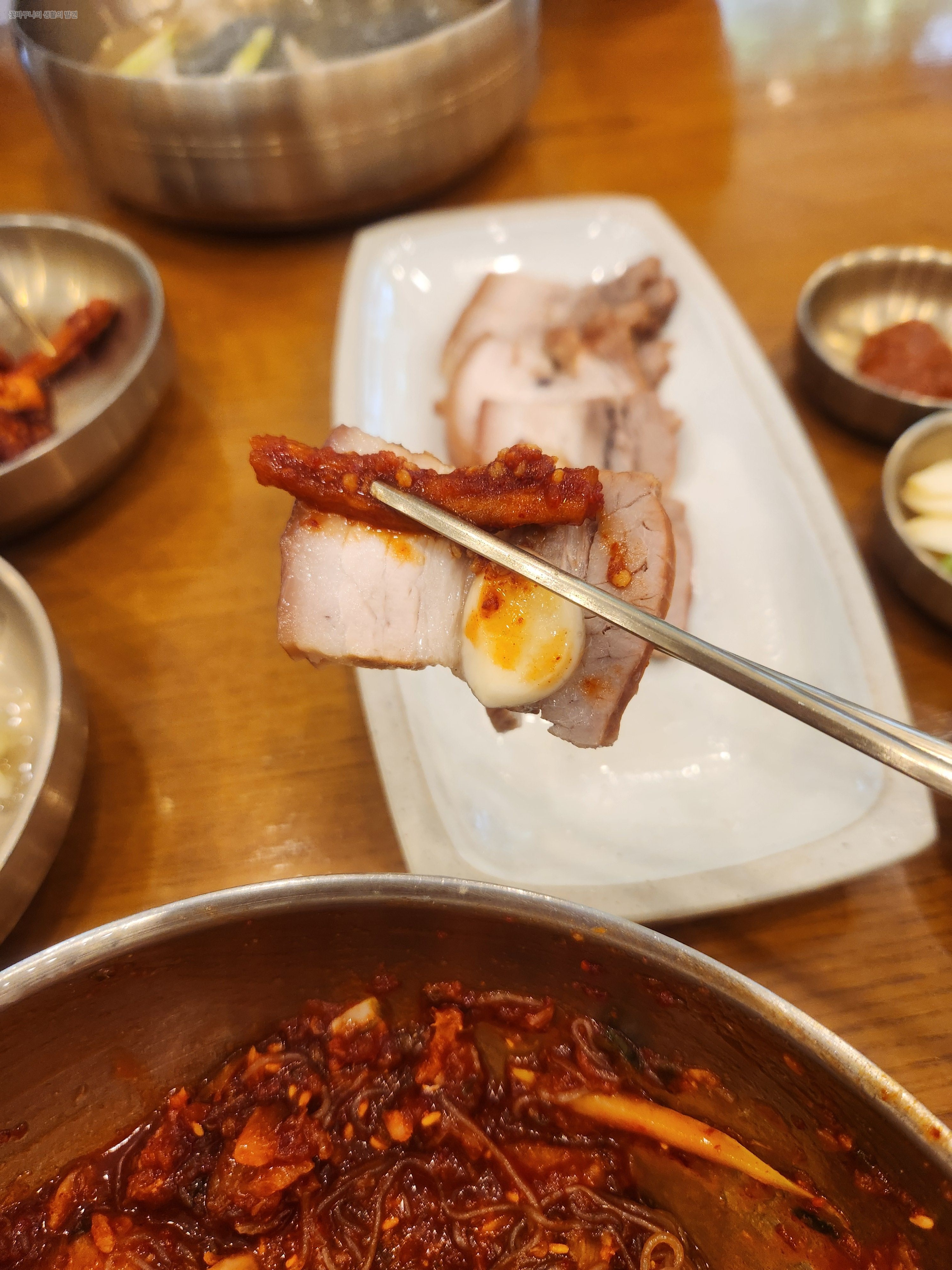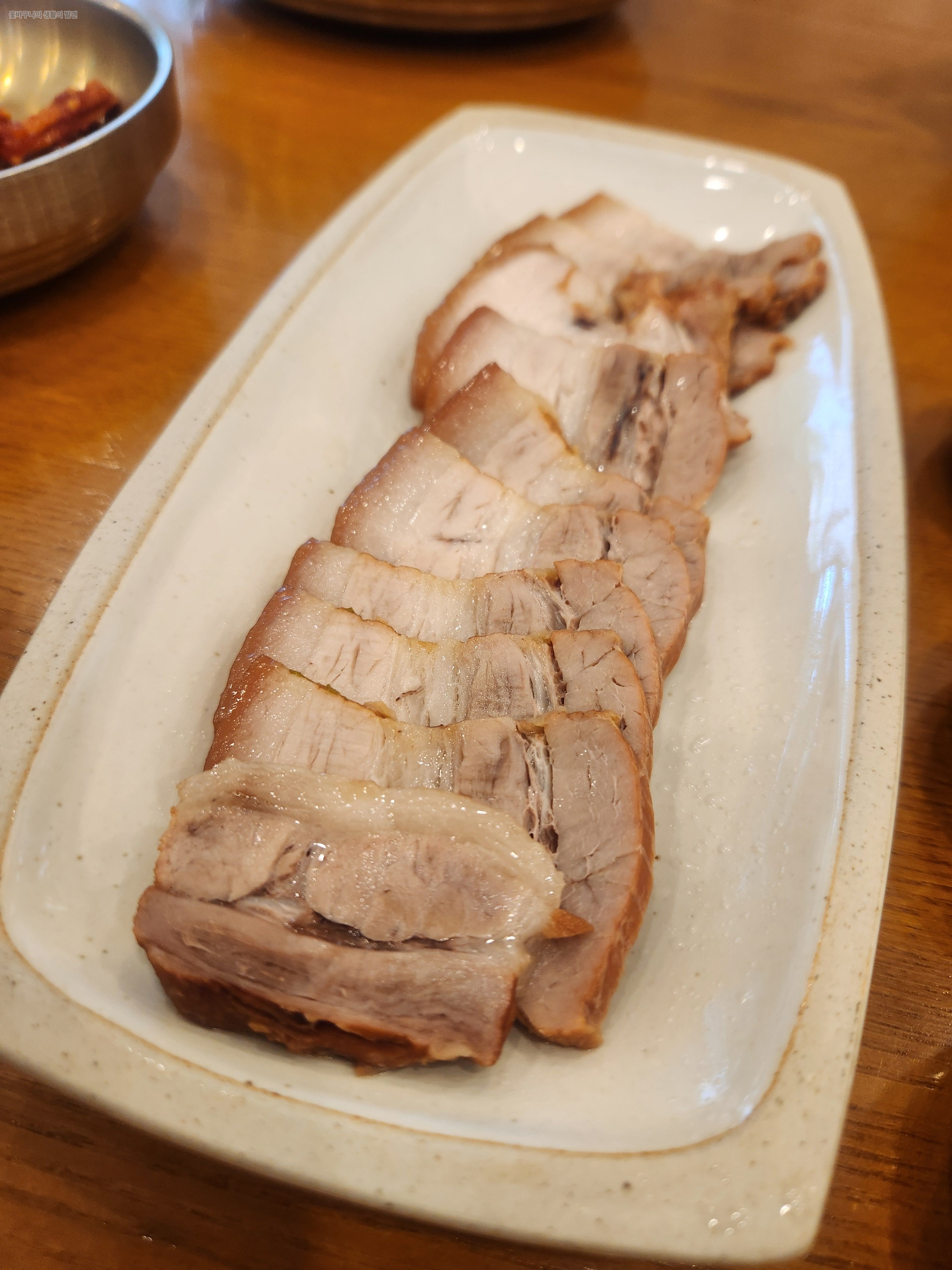 따뜻한 미니수육은 고기가 정말 연하고 부드러웠습니다. 어르신이나 아이들도 부담 없이 먹을 수 있을 정도로 육질이 아주 좋았습니다. 함께 나온 마늘과 고추를 넣어 함께 먹으니 그야말로 완벽합니다.