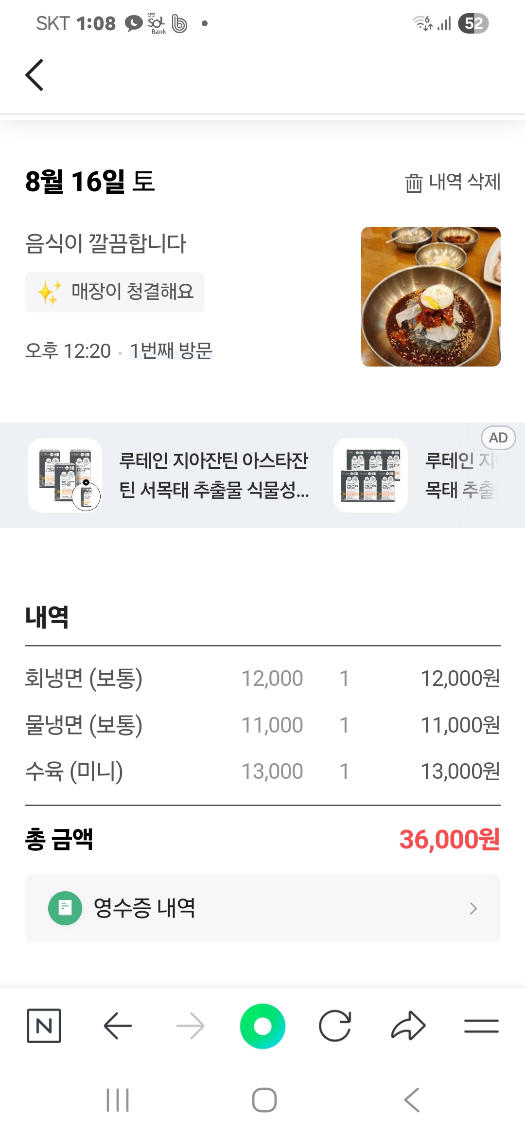 선결제 후 영수증을 받아 네이버 리뷰 쓰고 음료서비스받았습니다.~
