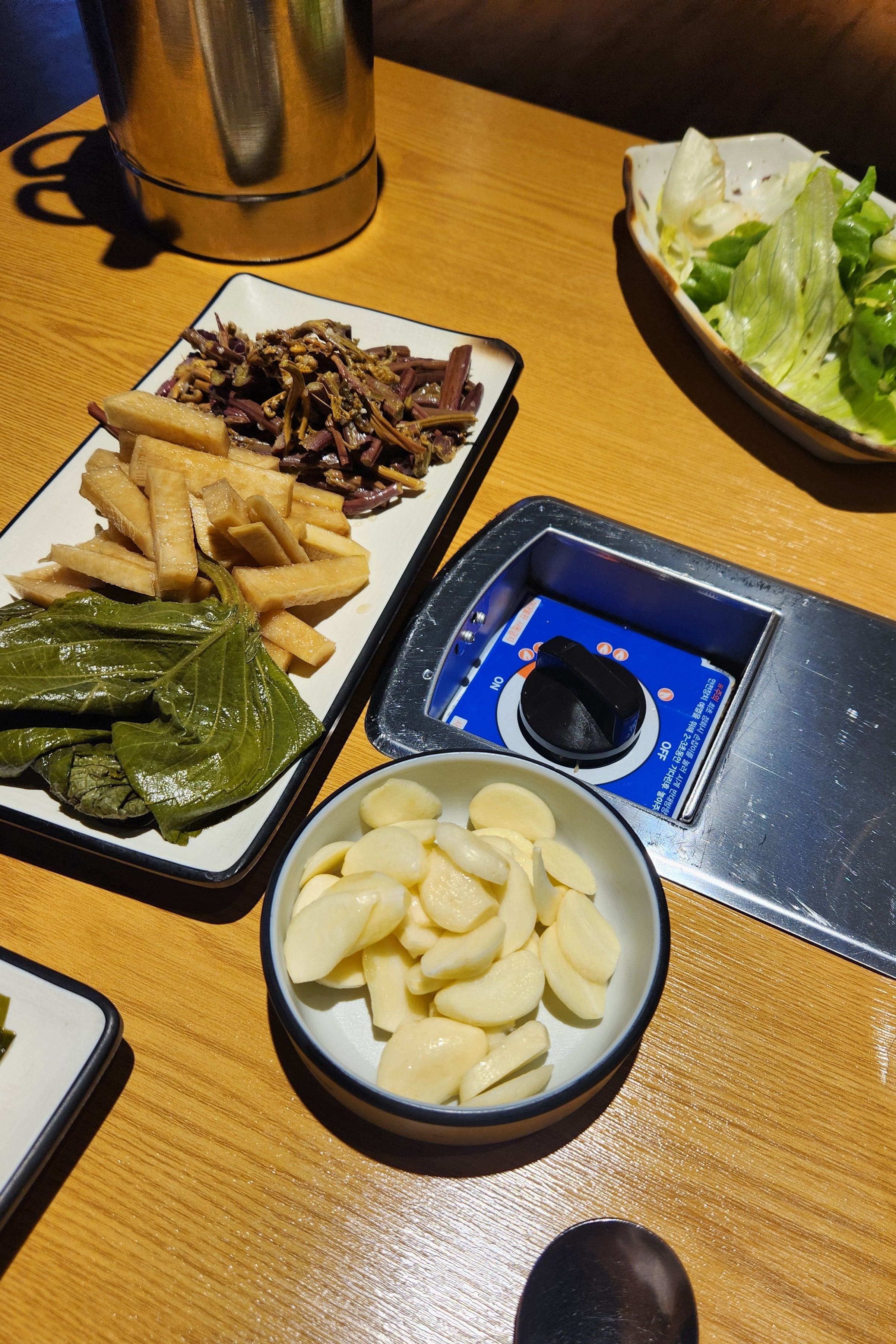 저녁시간 때라 창가뷰에는 앉지 못했지만 앉았다고 하더라도 먹는데 집중하느라 호수뷰는 눈에 들어오지 않았을 것 같습니다. 고기는 정말 신선하고 맛있었어요~^^ 거기에 미나리 고사리와 함께 하니 맛이 더 풍부해지는 느낌이었답니다. 요즘 고사리, 미나리 같이 나오는 삼겹살집이 많은데 이곳은 무한리필이라 더 매력적이었습니다. 식사 후에는 은계지구 호수공원을 한 바퀴 도는 것도 좋았습니다. 주차 편하고 다양한 룸도 있어 가족모임이나 회식장소로도 습니다.