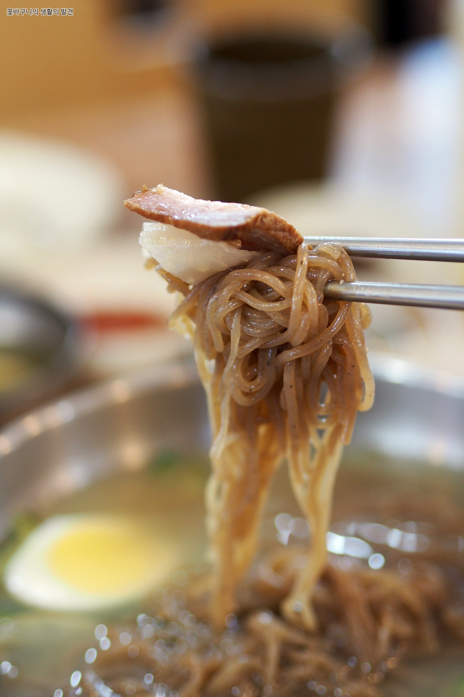 완자의 고소함과 현육의 담백함은 시원한 물냉면과 상큼한 비빔냉면의 맛을 더욱 풍성하게 만들어 주었습니다. 다른 냉면집과 맛 자체는 특별히 차이가 나는 것은 아니지만 완자와 함께 해서 그런지 특별함이 느껴지는 곳입니다.