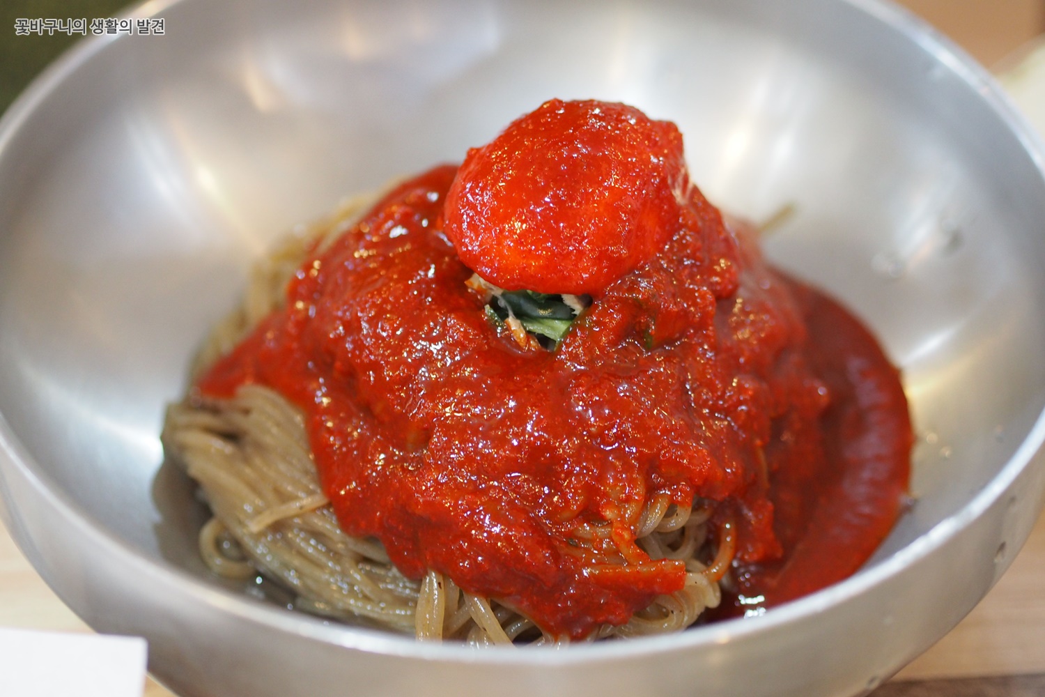강렬함이 느껴지지만 많이 달지 않고 많이 맵지 않아 먹으면 먹을수록 새콤달콤하면서 양념이 면발과 잘 어우러진 맛입니다.