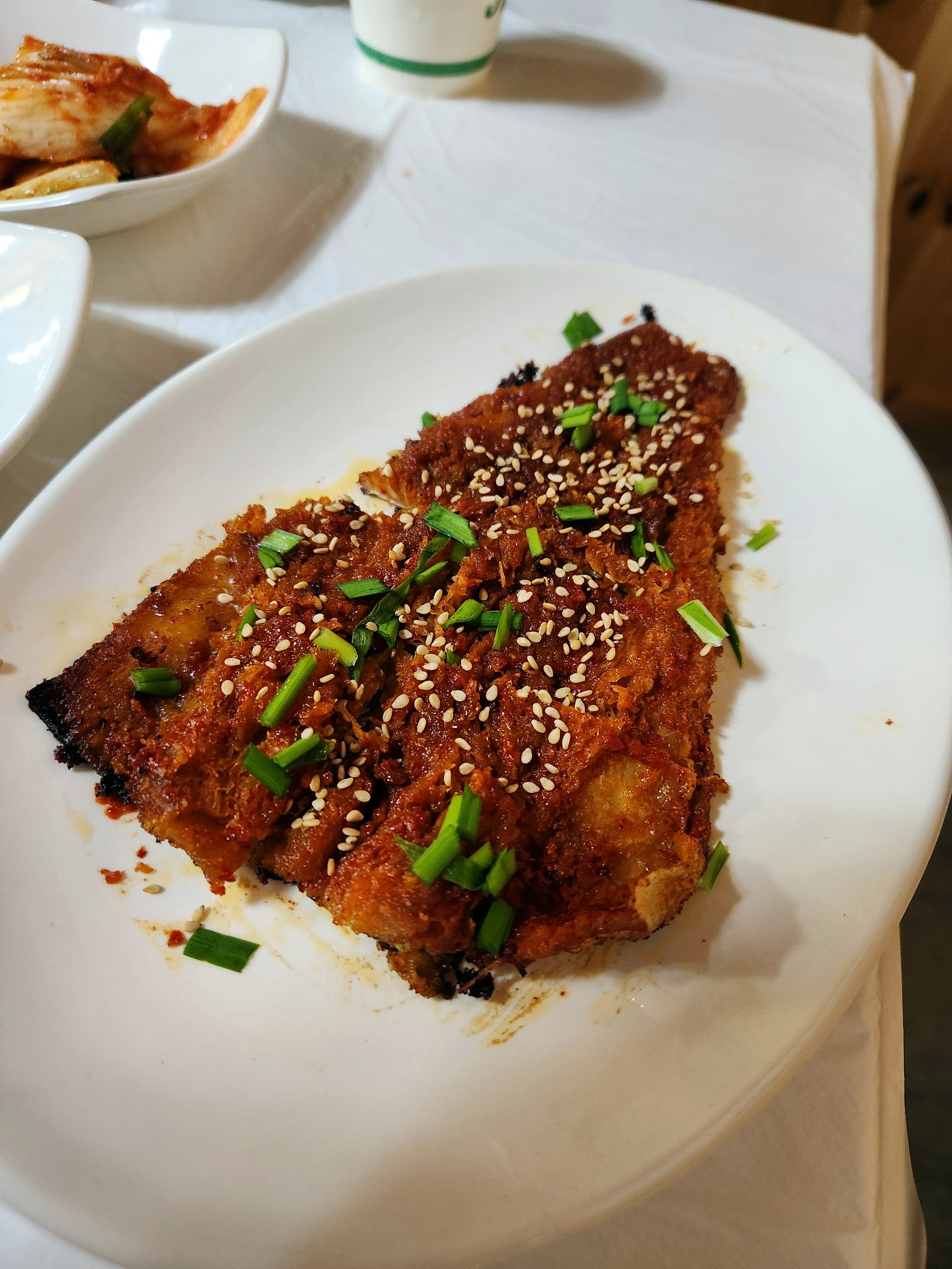 먹고 싶었던 황태구이입니다, 황태살에 양념이 적절하게 잘 배어 있고 촉촉하면서 어쩜 이리 부드러운지.. 인제 황태가 유명한 이유가 있구나 싶었답니다.