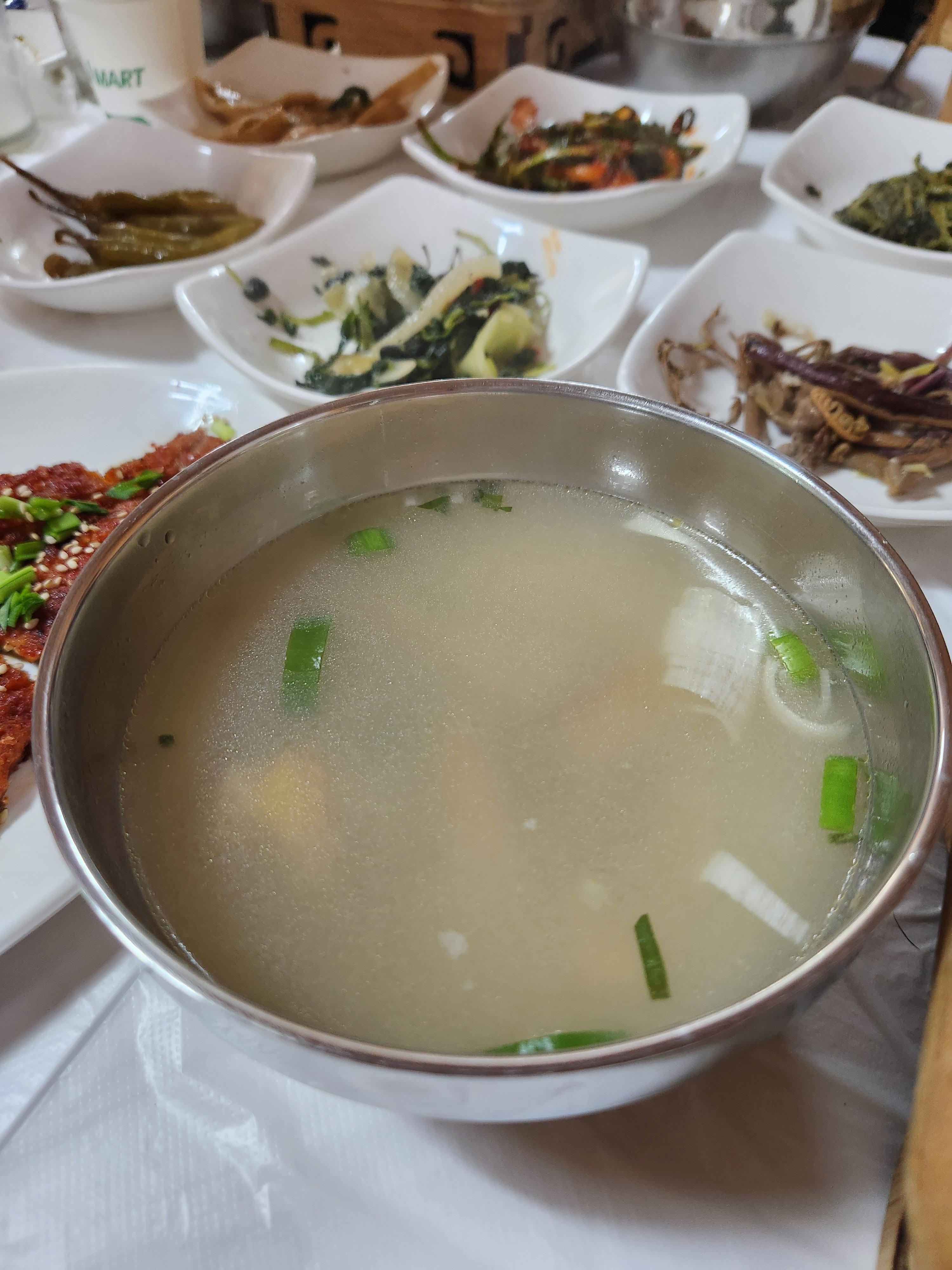 함께 나온 황탯국입니다., 국물이 많아서 황태가 잘 보이지 않는데 시원하고 정말 맛있습니다, 국물 시원한 건 말할 필요도 없고 황태가 이리 부드러울 수 있나 싶었습니다. 원래 평상시에 황탯국을 그리 즐기는 사람이 아니라 황태는 거의 남기고 국물만 먹는데 이곳 로즈메리가든 황탯국은 확실히 맛이 다르네요.. 황태 건더기를 싹싹 다 모아 집어 먹었답니다.