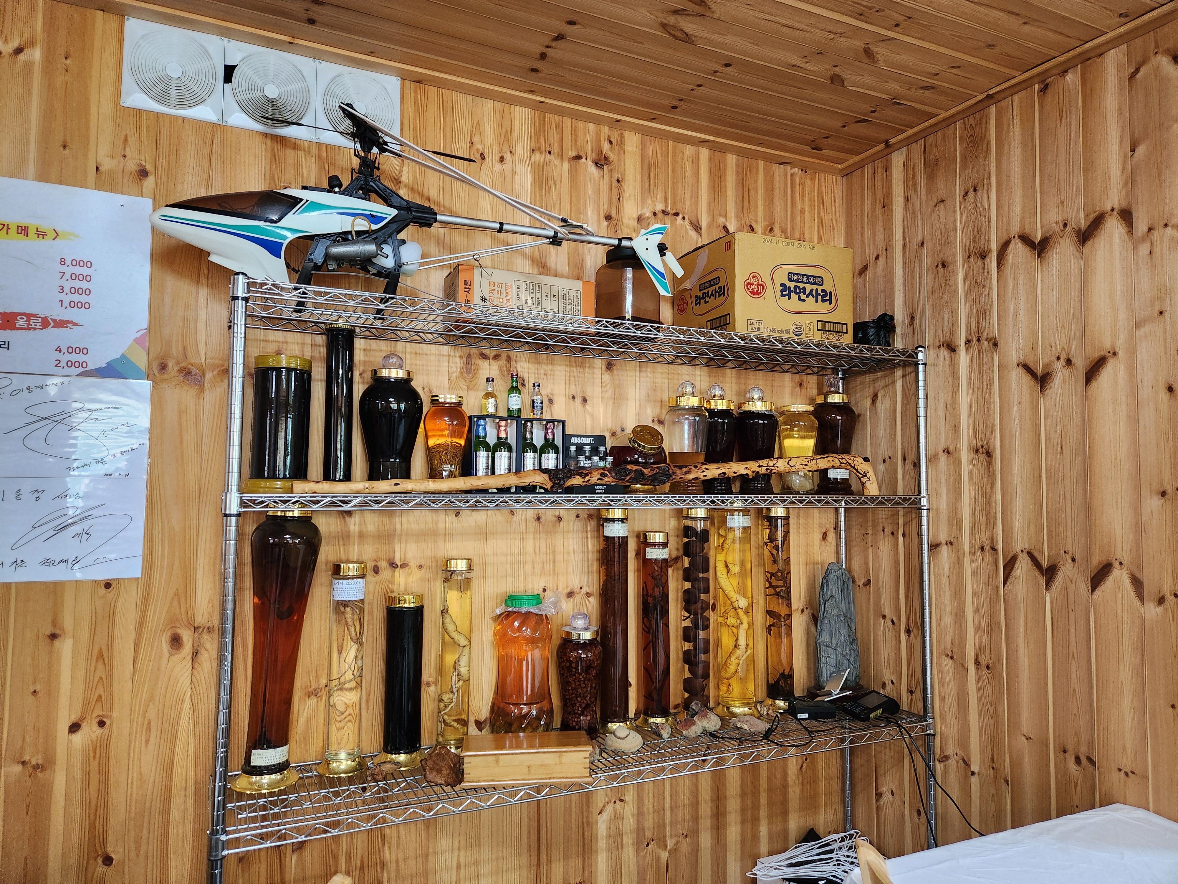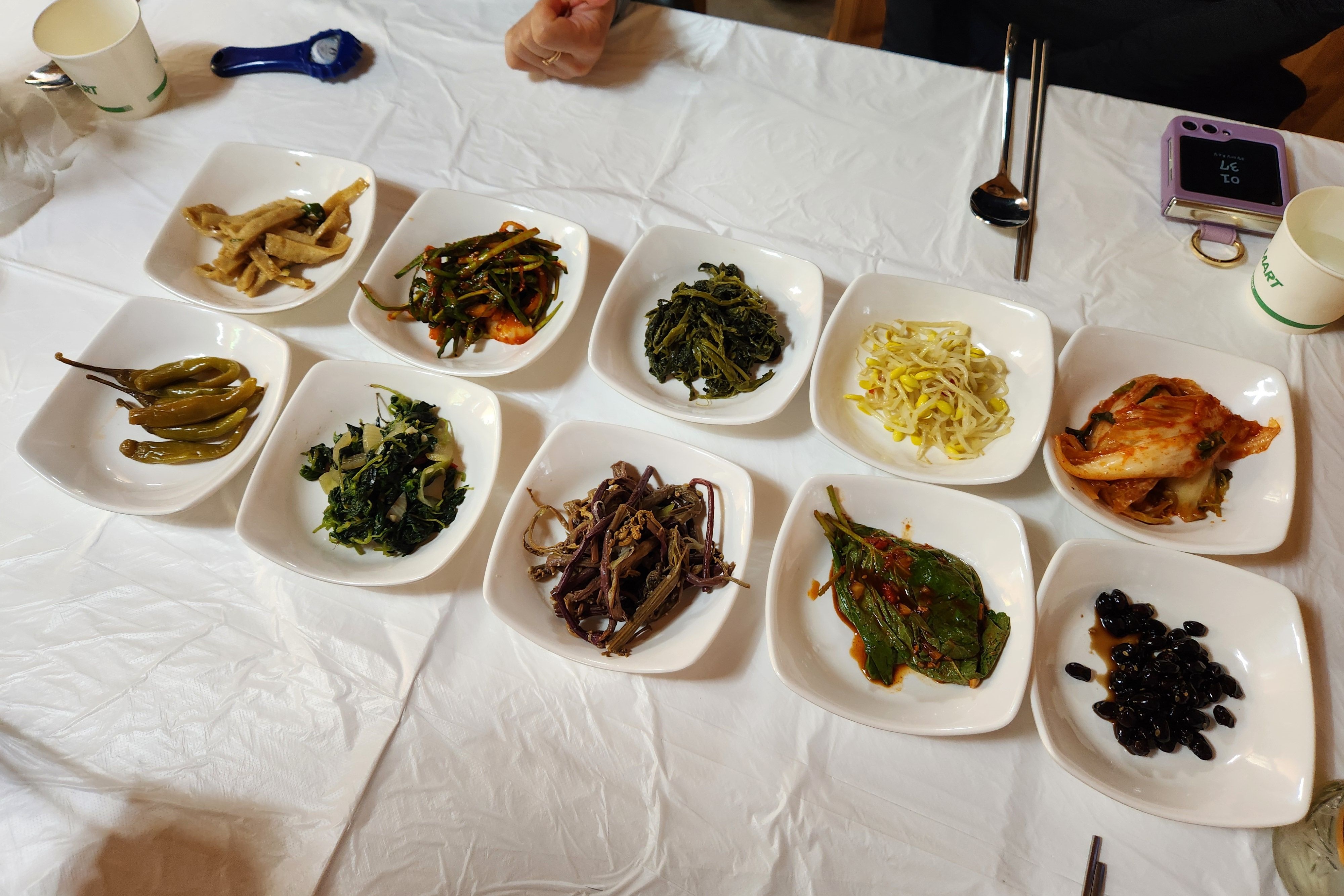 앉아서 조금 기다리다 보니 반찬이 세팅되었습니다. 단체 손님들로 조금 늦어질 듯하여 밑반찬을 집어 먹어 보니 역시 강원도라 그런가,, 산나물들이 너무 맛있었습니다. 반찬은 나중에 셀프로 더 가져다 먹을 수 있는데 나물류로 몇 번 더 가져다 먹었습니다.