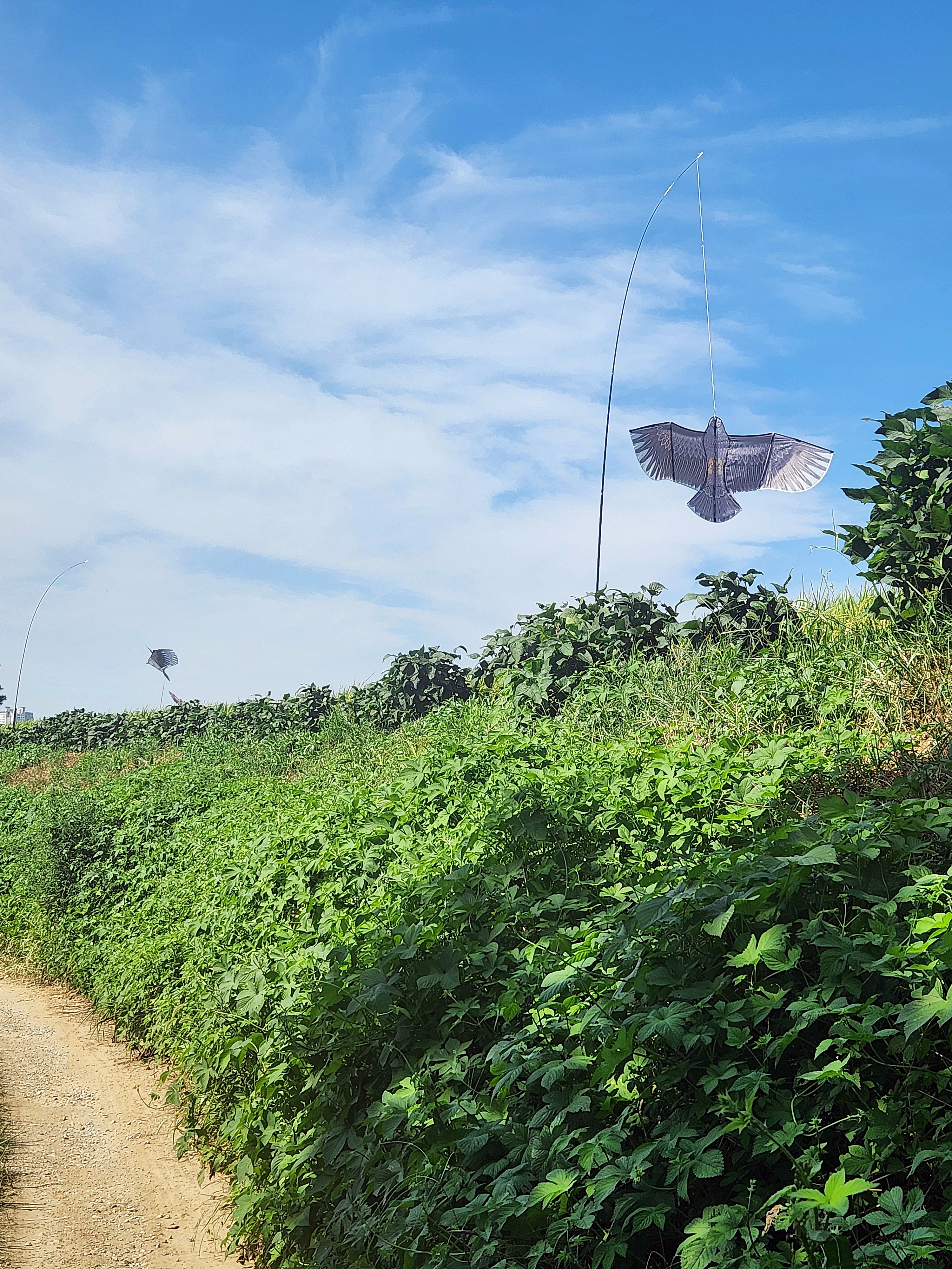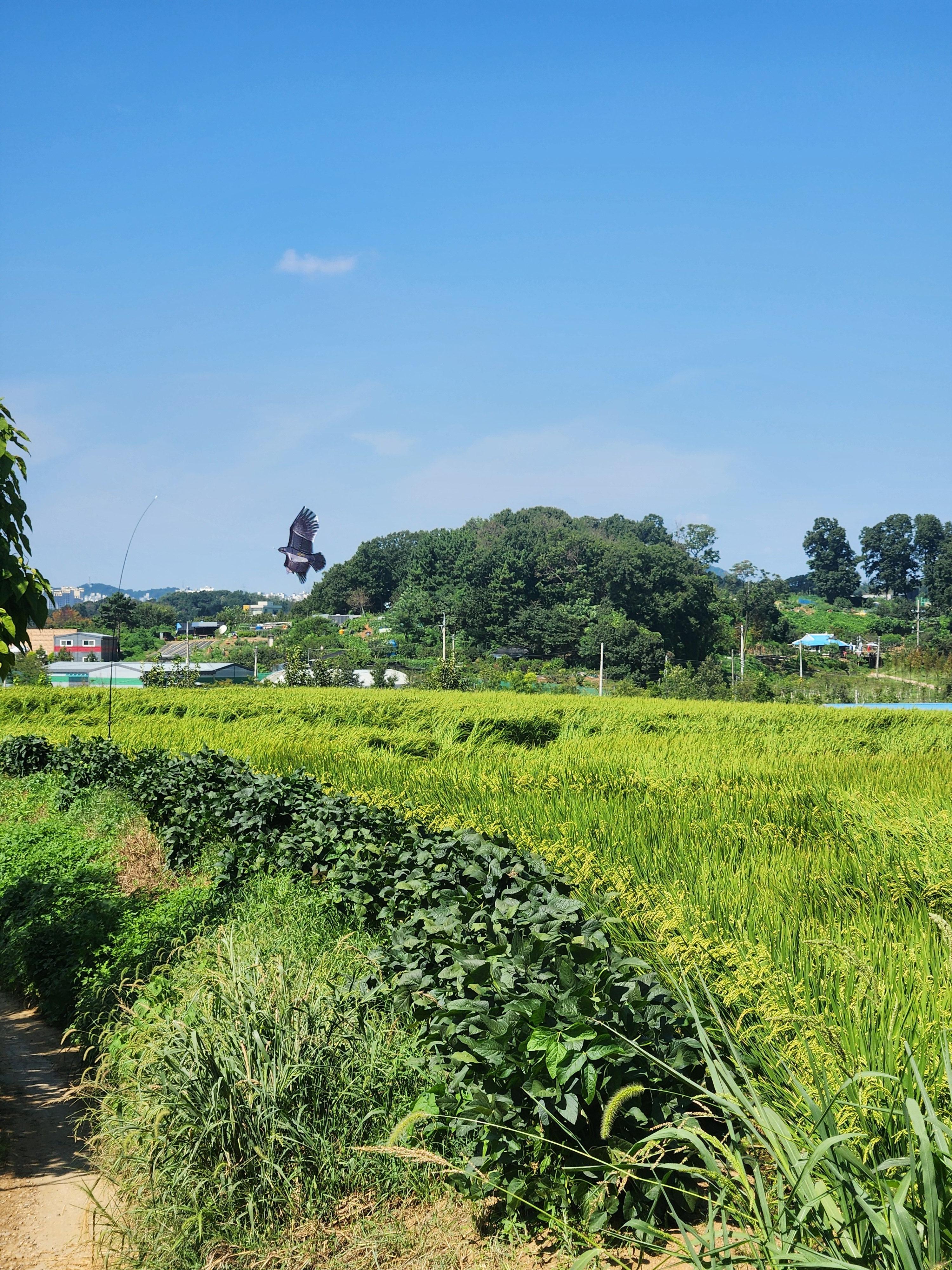 가을 벼가 익어가는 모습도 오랜만에 보니 정겹습니다, 참새를 쫒는 독수리 모양의 연이 바람에 연신 흔들거리네요.