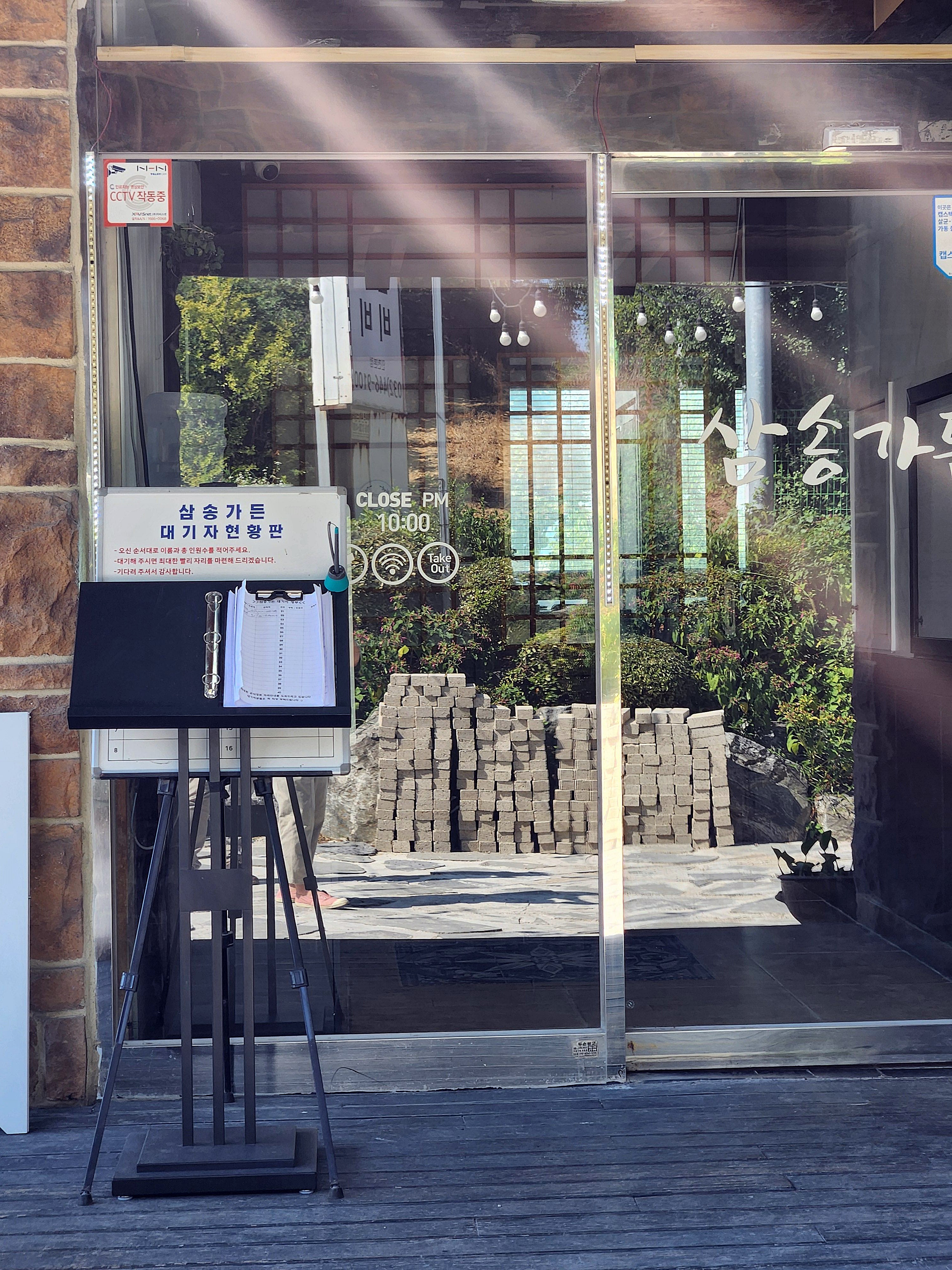 주차를 하고 올라오니 입구에 대기 공간도 넓습니다, 사진으로 보이는 곳 말고도 주변에 테이블과 의자가 놓여 있어 편하게 대기하실 수 있습니다. 오시는 순서대로 이름과 인원수를 적고 대기하시면 됩니다. 일요일 점심시간이 지나서 그런지 바로 입장~