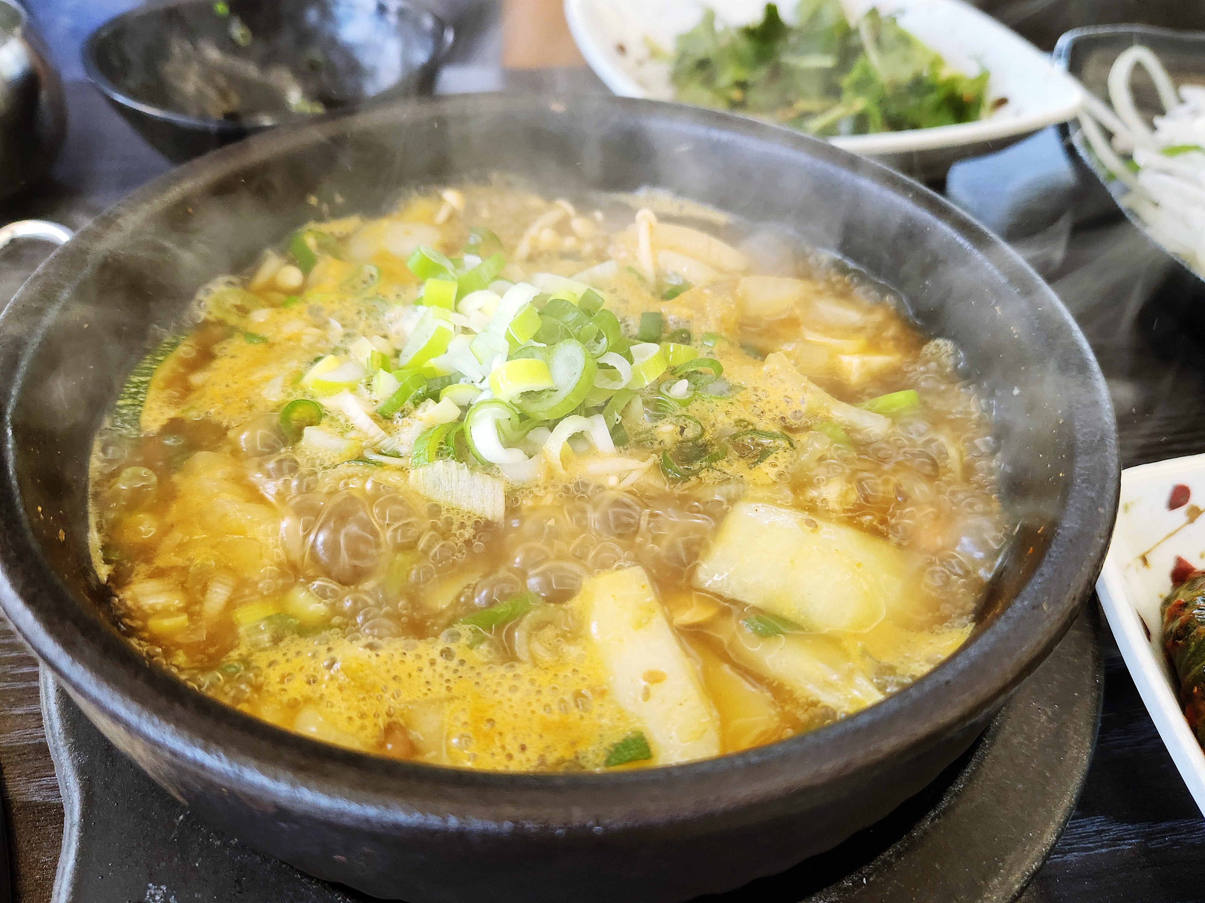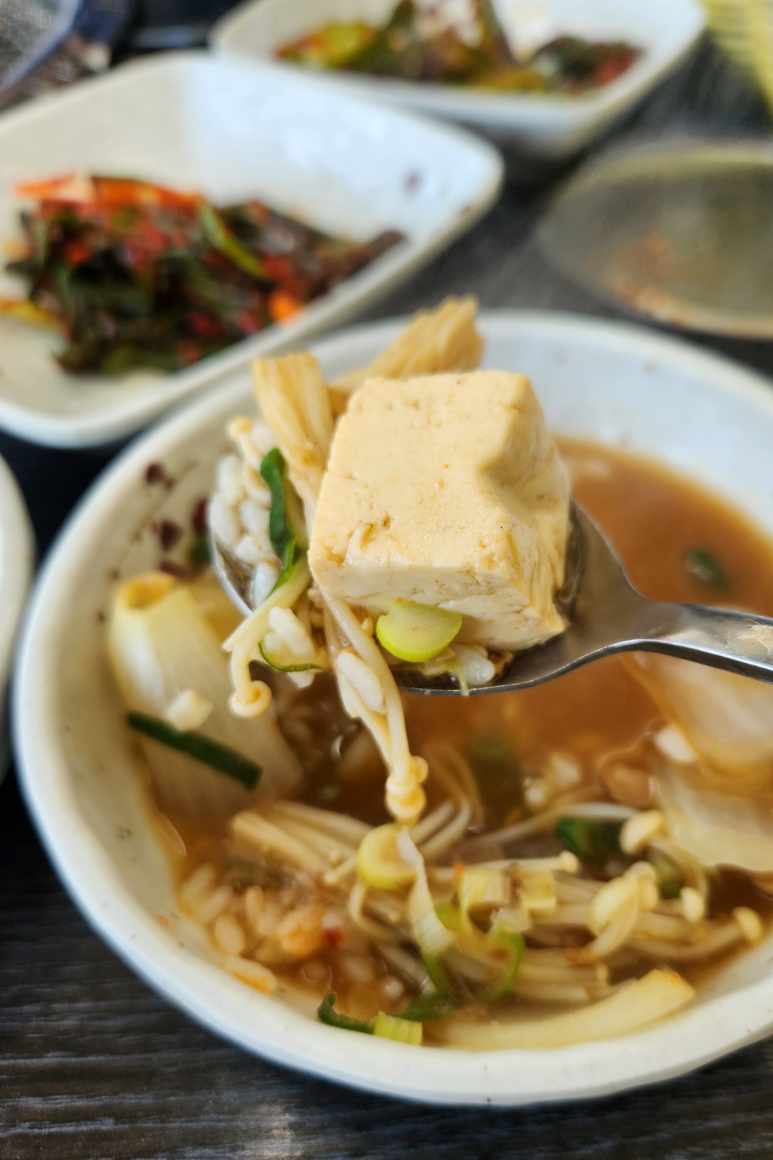 보글보글 된장찌개도 짜거나 하지 않고 밥과 함께 마구 퍼 먹게 되는 ~두부나 버섯도 알차게 들어 가 있어 아주 맛이 좋습니다.