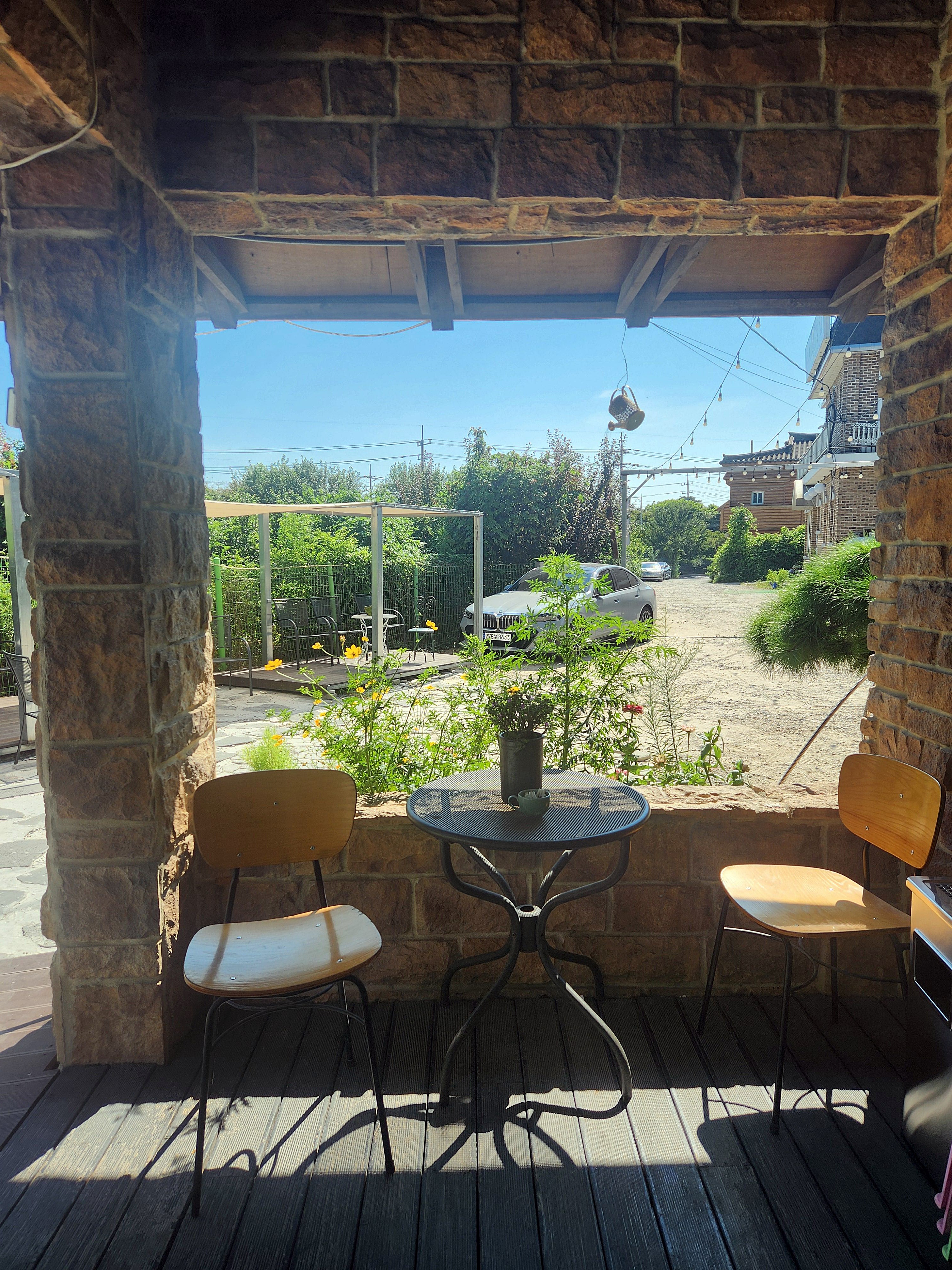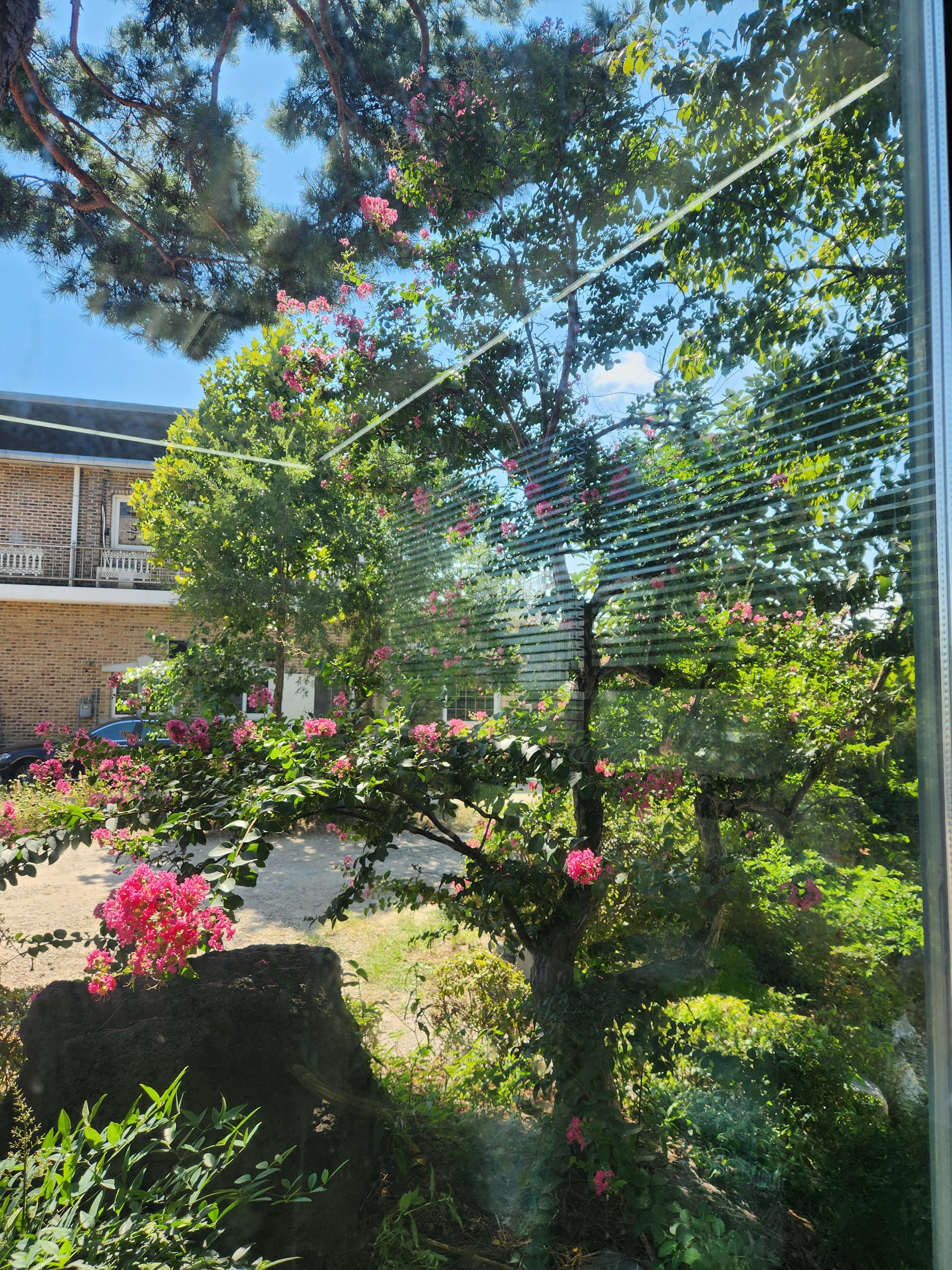 창가에 배롱나무가 예쁘게 피어 있어 자리를 잡았는데 한적하고 초록 뷰가 보이니 이곳만 보면 되지갈빗집이 아니라 카페 같은 느낌입니다.