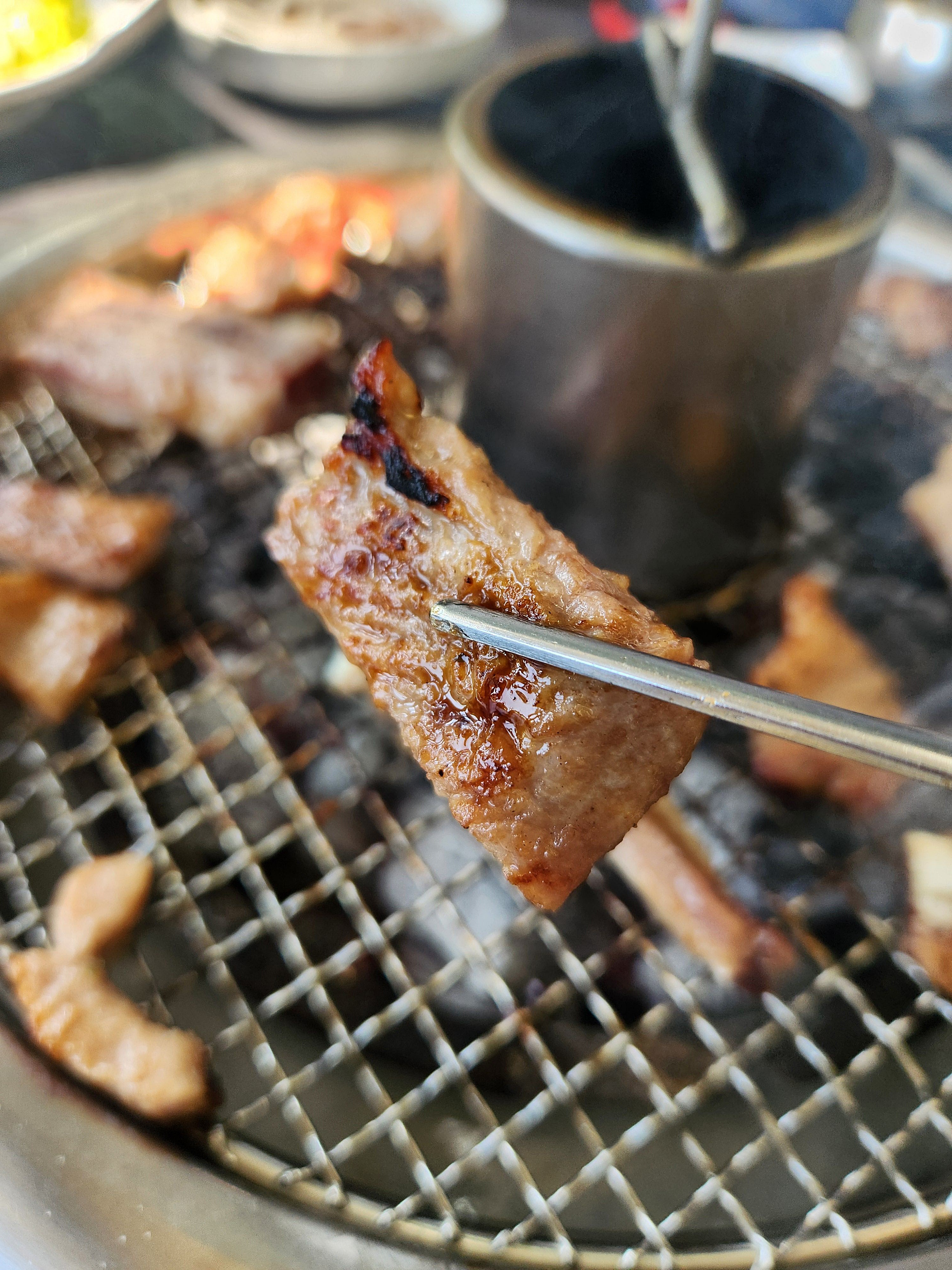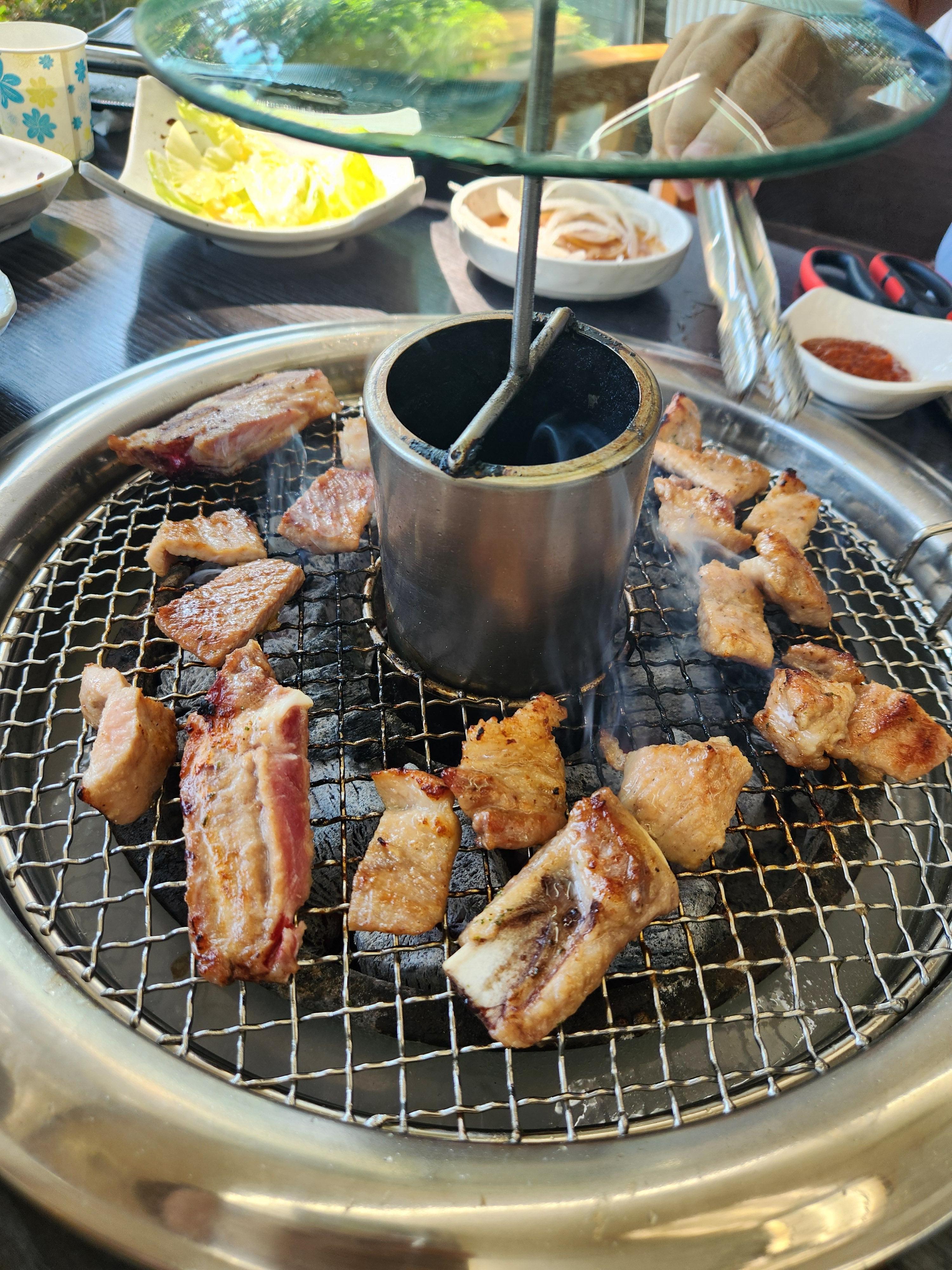 불판 가운데 구멍이 있고 그곳으로 연기가 빨려 들어가 연기 걱정은 안 하셔도 됩니다.