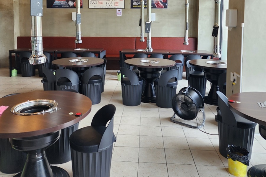 숯불의 향이 베이지 않게 옷이나 소품은 의자아래 보관하시면 됩니다.