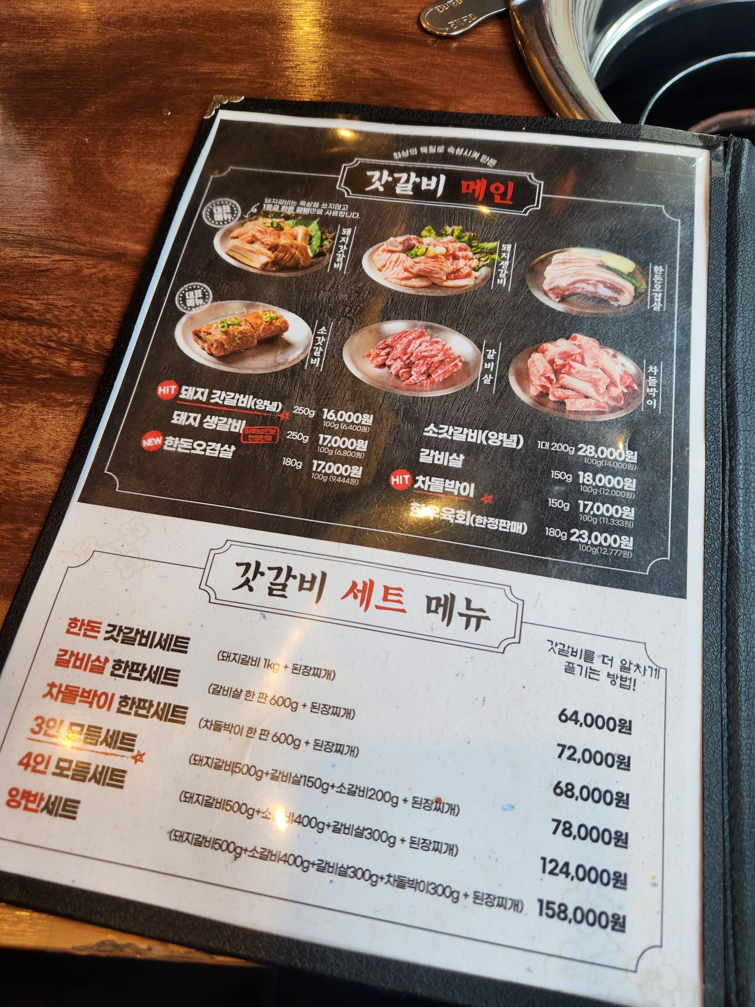 열정 넘치는 마라톤 후에 10km를 완주한 안님과 응원으로 지친?? ㅋㅋ 저의 영양보충을 위한 갓갈비에서의 메뉴는 이곳의 시그니처 메뉴인 돼지갈비를 주문했습니다. 갓갈비는 돼지갈비를 직화 숯불에 구워 먹는 방식으로 이게 또 갈비 맛을 한층 더 끌어올려주는 포인트 아니겠습니까.