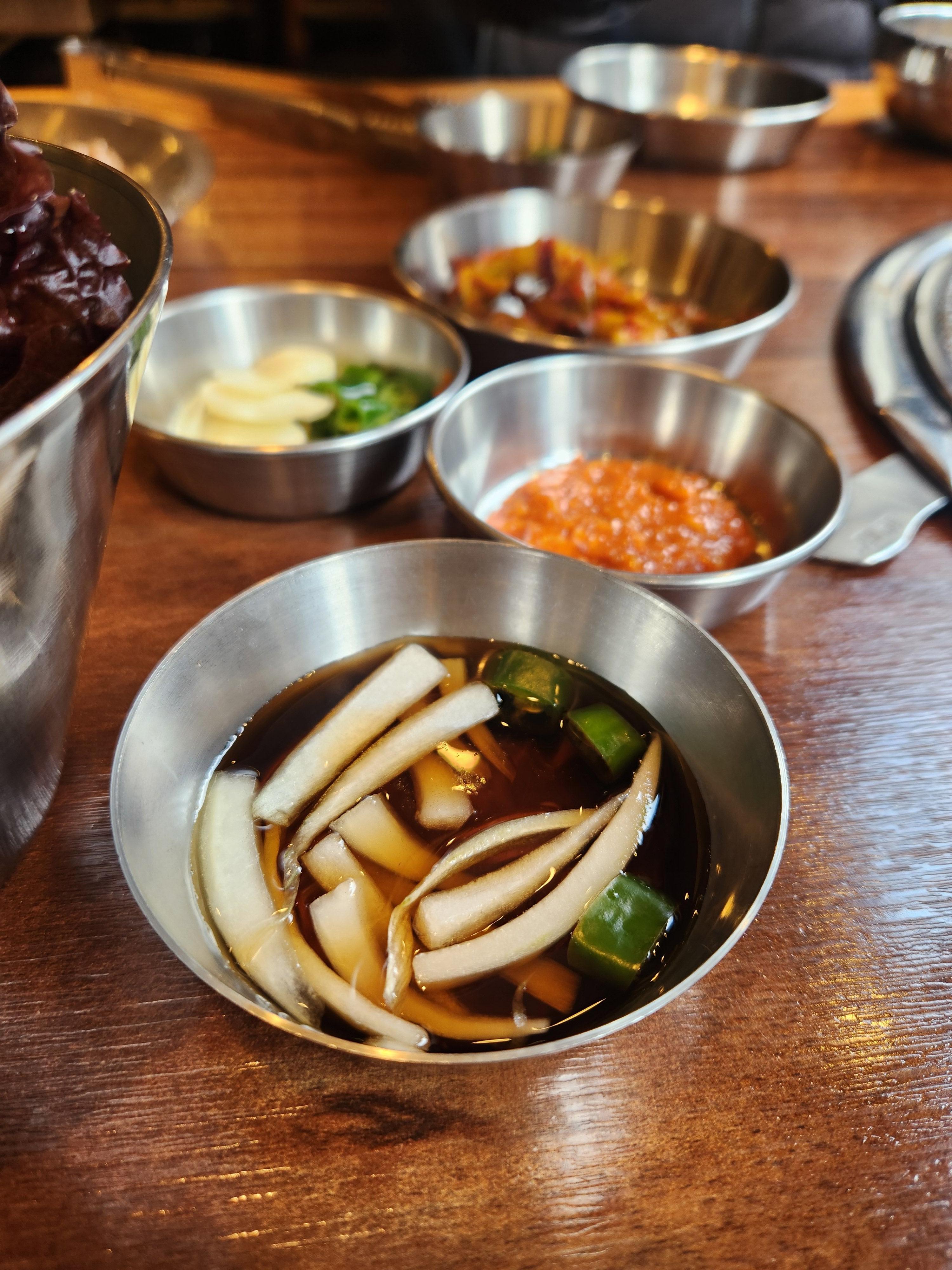 기본반찬들도 고기와 곁들이기 좋은 것으로 과하지 않게 준비되었습니다.